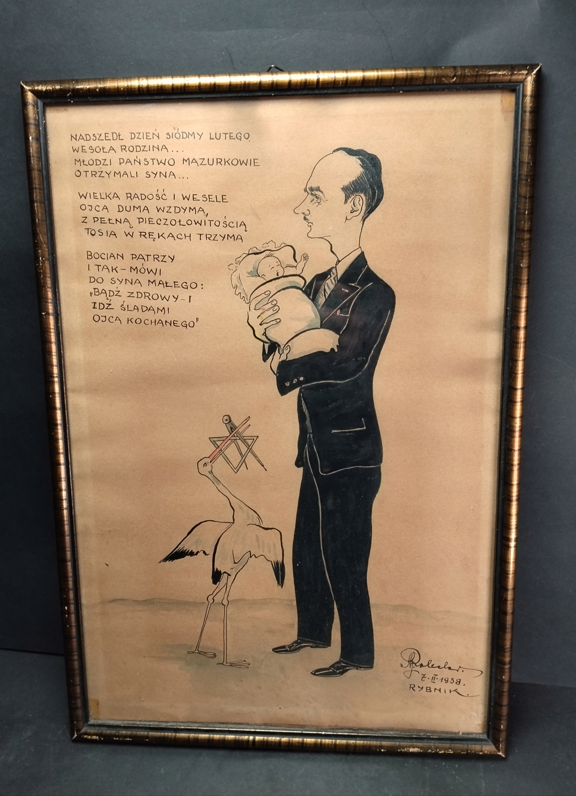 АНК II РП МЕЦИСЛАВ РОЛЕЦКИЙ КАРИКАТУРА СЛЕНСК РЫБНИК 7 февраля 1939 г. уникальная