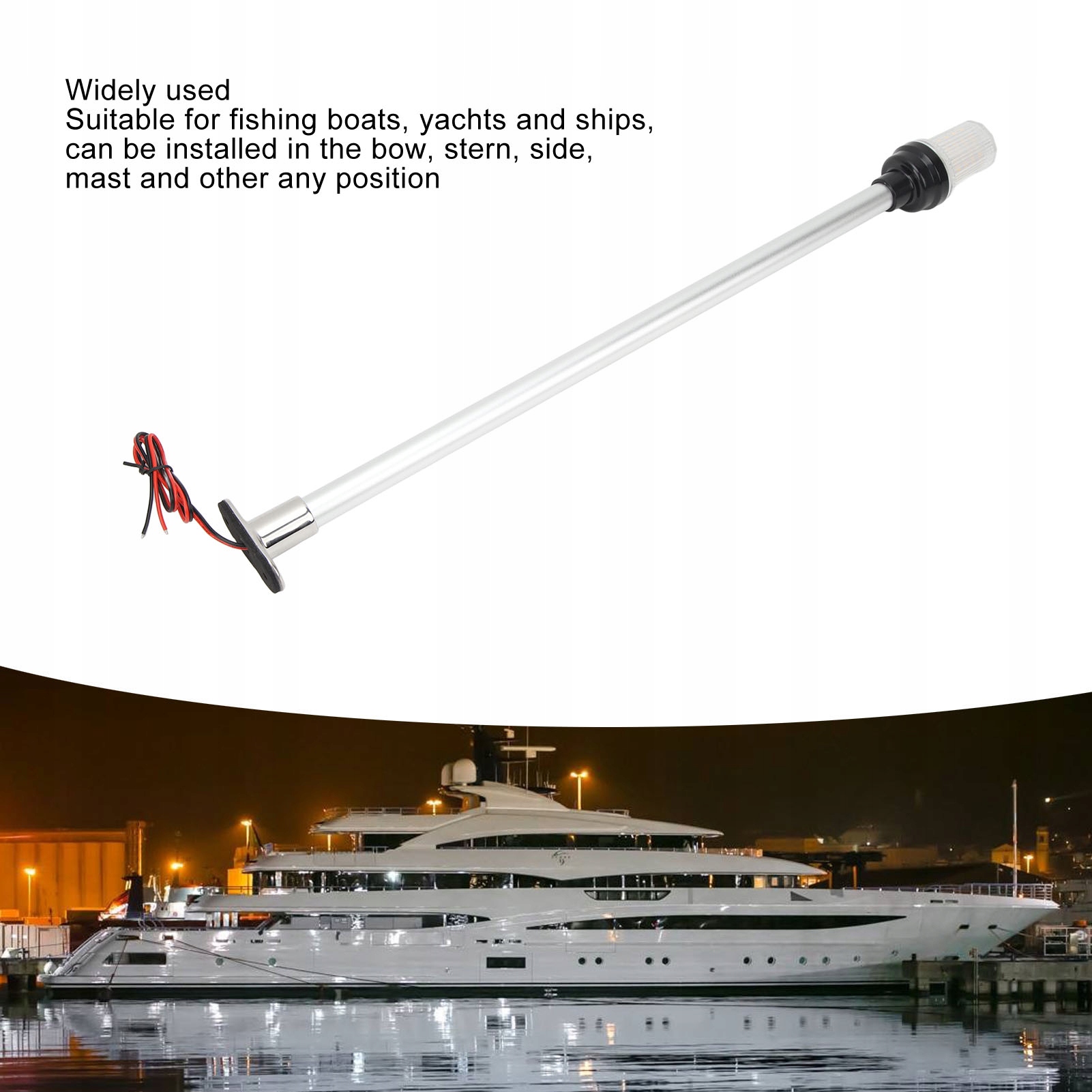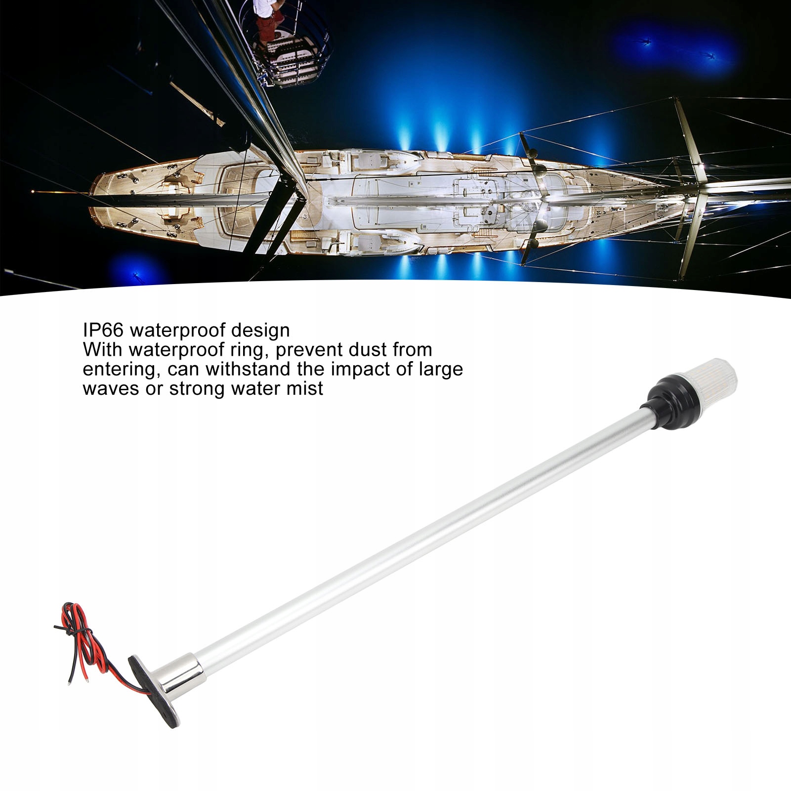 1. Стабильное основание и пост: навигационный свет имеет основание из нержавеющей стали и алюминиевый стержень, который может стоять у шерохого моря, не беспокоясь о разрыве основания. 2. Супер яркость: универсальный свет имеет 63 светодиода с цветом теплого белого, видимость больше 3 миль моря, широкое напряжение от 12 до 24 В. Это важный элемент оборудования для безопасности для морской среды. 3. База байонета с двойным контактом: ее нельзя очистить или случайно демонтировать. Он более стабилен, чем обычная винтовая основа (легко упасть и ржаветь) и базовая штифта (легко падать). 4 5. Водонепроницаемая конструкция IP66: анкерная лампа с водонепроницаемым кольцом полностью предотвращает попадание пыли и может противостоять воздействию сильных волн или сильного водного тумана. 6.