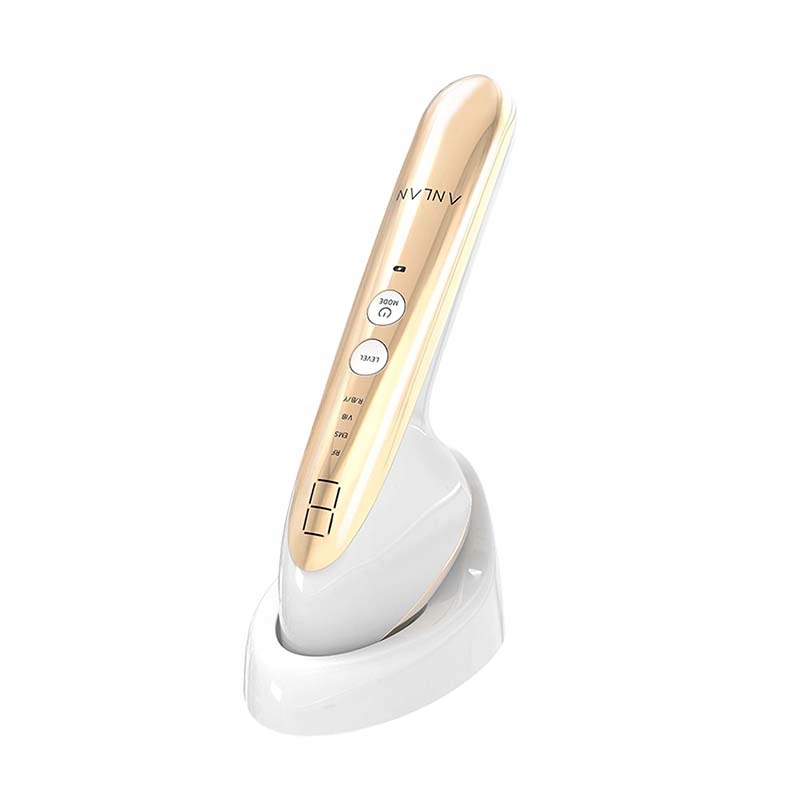 Не отказывайтесь от ухода за кожей во время отсутствия. Устройство Анлан настолько компактно, что его легко можно положить в косметичку и взять с собой в отпуск. Он весит около 140 г, что упрощает его использование. Эргономичная головка идеально прилегает к коже, а электроды обеспечивают впитывание косметики. Дополнительно в комплект входит подставка для удобного хранения.
