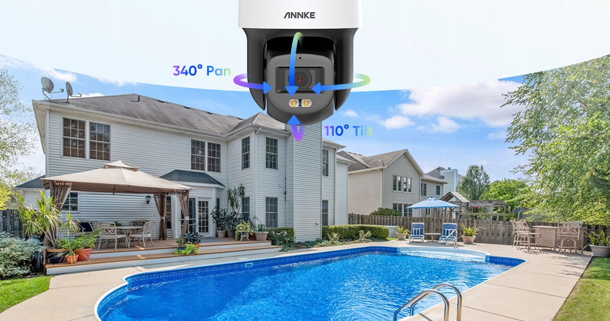 Эта камера может поворачиваться по горизонтали до 340° и наклоняться по вертикали до 110°. Управляя им удаленно, вы можете легко изменить угол обзора камеры, чтобы захватить более широкий ракурс контролируемого пространства. Идеально подходит для мониторинга больших объектов, таких как парковки, открытые площадки и склады.