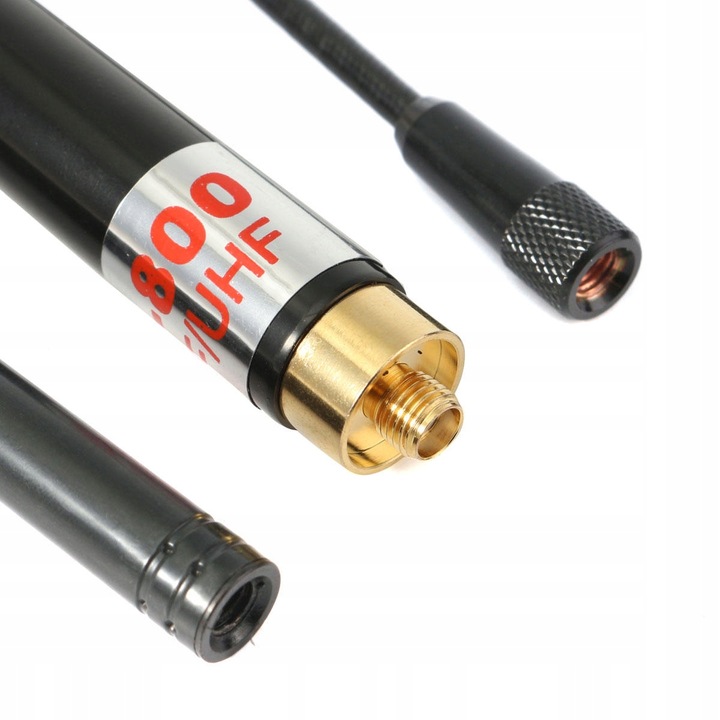 Антенна имеет разъем SMA-Female и длинное основание, которое опирается на корпус радиостанции, защищая радиостанцию от поломки гнезда.