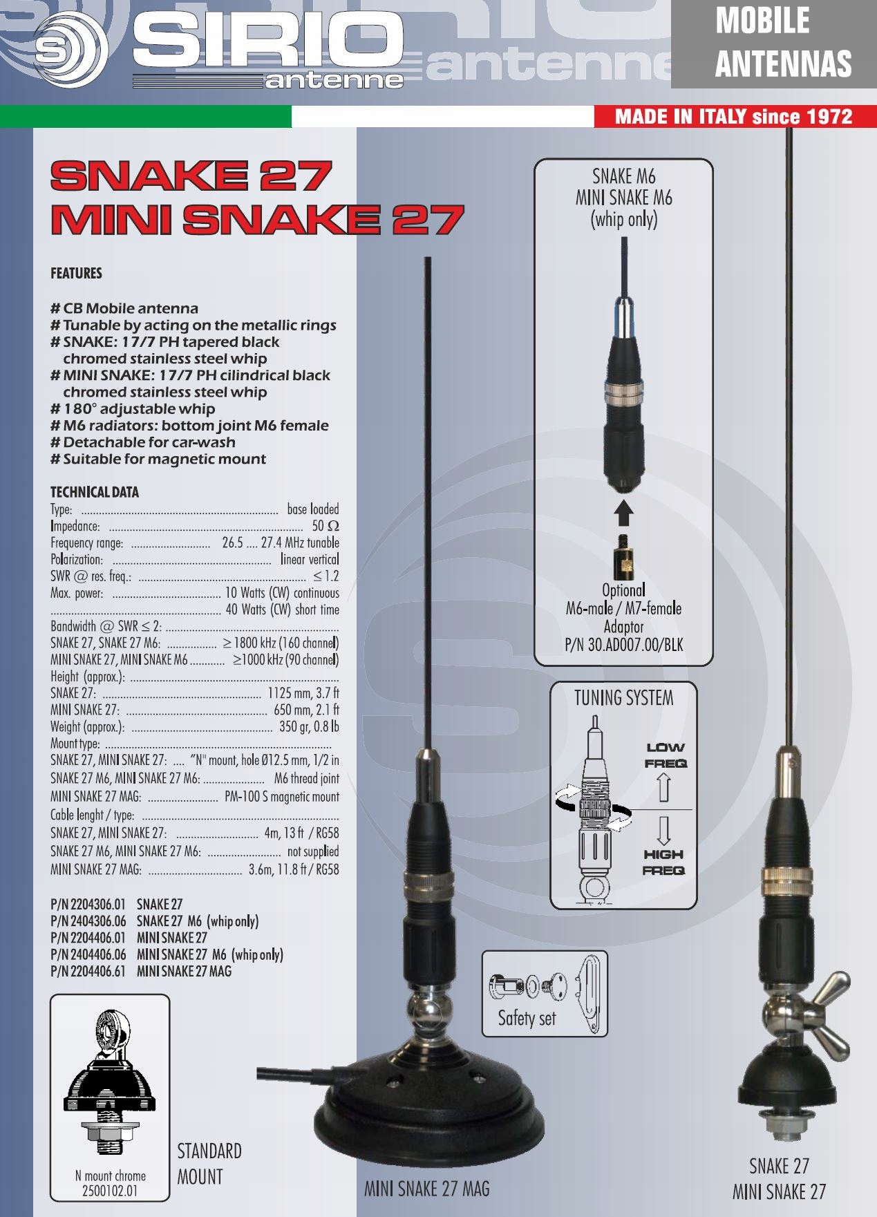 СУПЕР МОНТАЖНАЯ АНТЕННА SIRIO mini Snake 27 черная