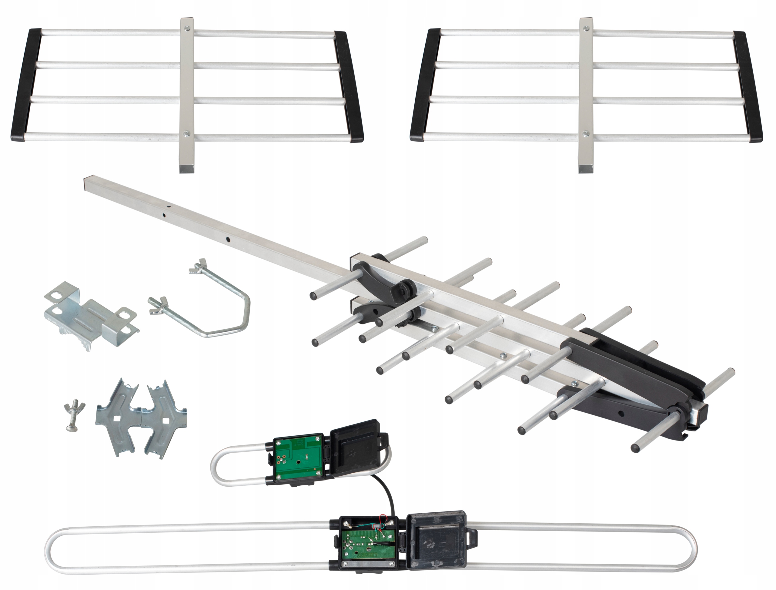 Полный комплект антенн для подключения одного телевизора, все компоненты подобраны опытными монтажниками, что гарантирует бесперебойный прием сигнала.