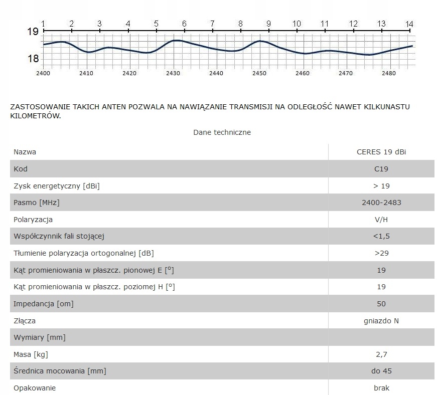 - Панельная антенна CERES 19HV 2,4GH < /li>