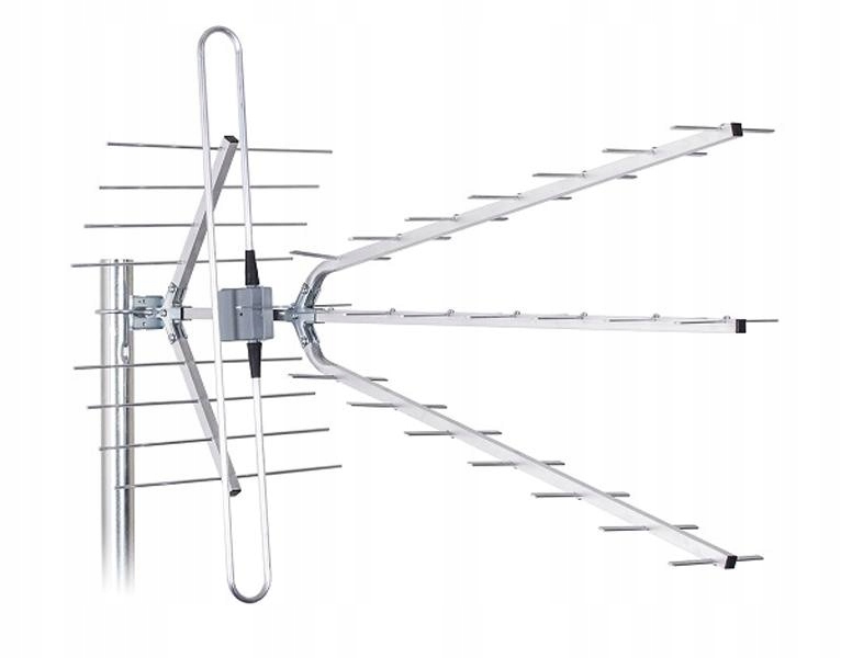 <ул> <ли> <б> Прием каналов: УКВ 5–12 УВЧ 21–60 <ли> <б> Группа: УКВ 174–230 МГц УВЧ 470–790 МГц <ли> <б> Выгода: 25 дБ <ли> <б> Импеданс: 75 Ом <ли> <б> Длина: 96 см <ли> <б> Количество элементов: 36 <ли> <б> Поляризация: УВЧ – горизонтальный ОВЧ – горизонтальный/вертикальный <ли> <б> Страна производства: Польша