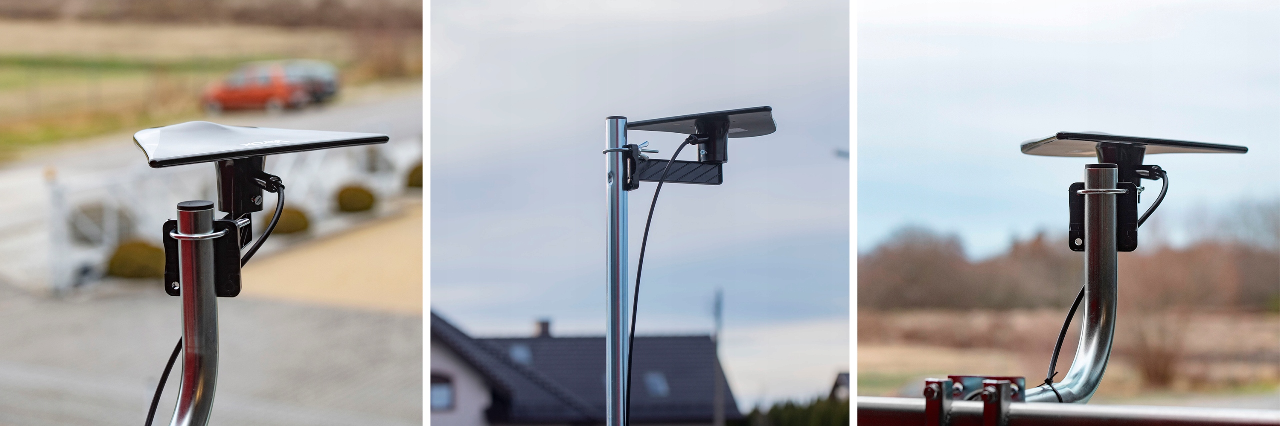 Благодаря ручке, прикрепленной к набору, вы можете просверлить антенну непосредственно к фасаду вашего здания, и кибант, прикрепленный к установленной антенне или барьеру для балконов.