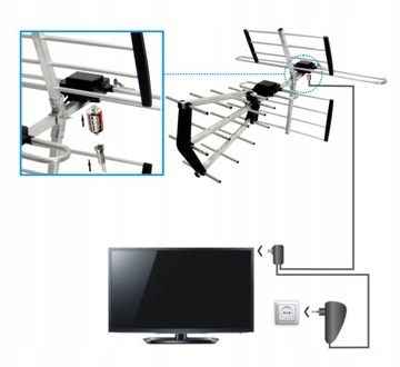 На корпусе блока питания имеется светодиод (зеленый), сигнализирующий о включении Блок питания подключен к сети 230В. . Если антенный кабель неправильно подключен к ТВ-сплиттеру, светодиод гаснет, указывая на короткое замыкание. При правильном подключении антенного кабеля светодиод снова загорится.