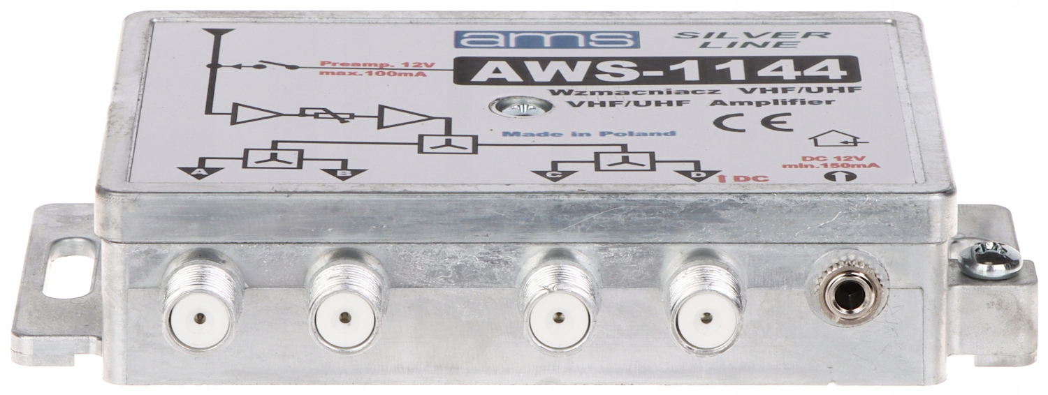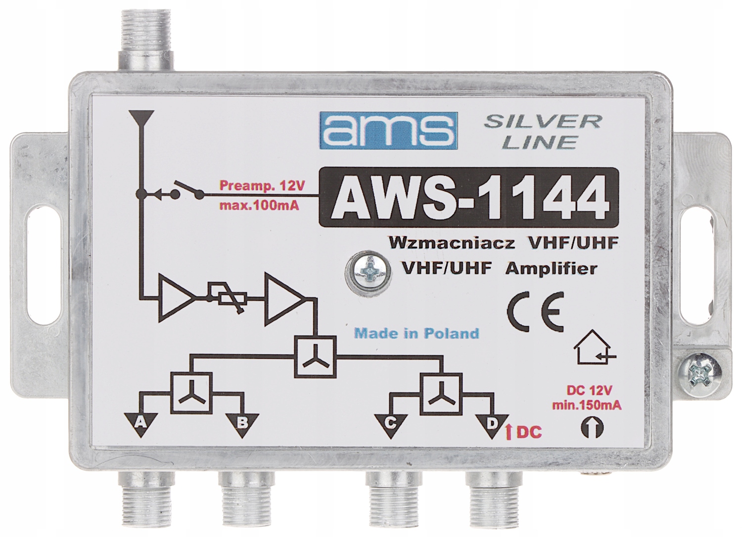 АНТЕННЫЙ УСИЛИТЕЛЬ 13 – РАЗДЕЛИТЕЛЬ 15 ДБ ДЛЯ 4 ТВ AWS-1144