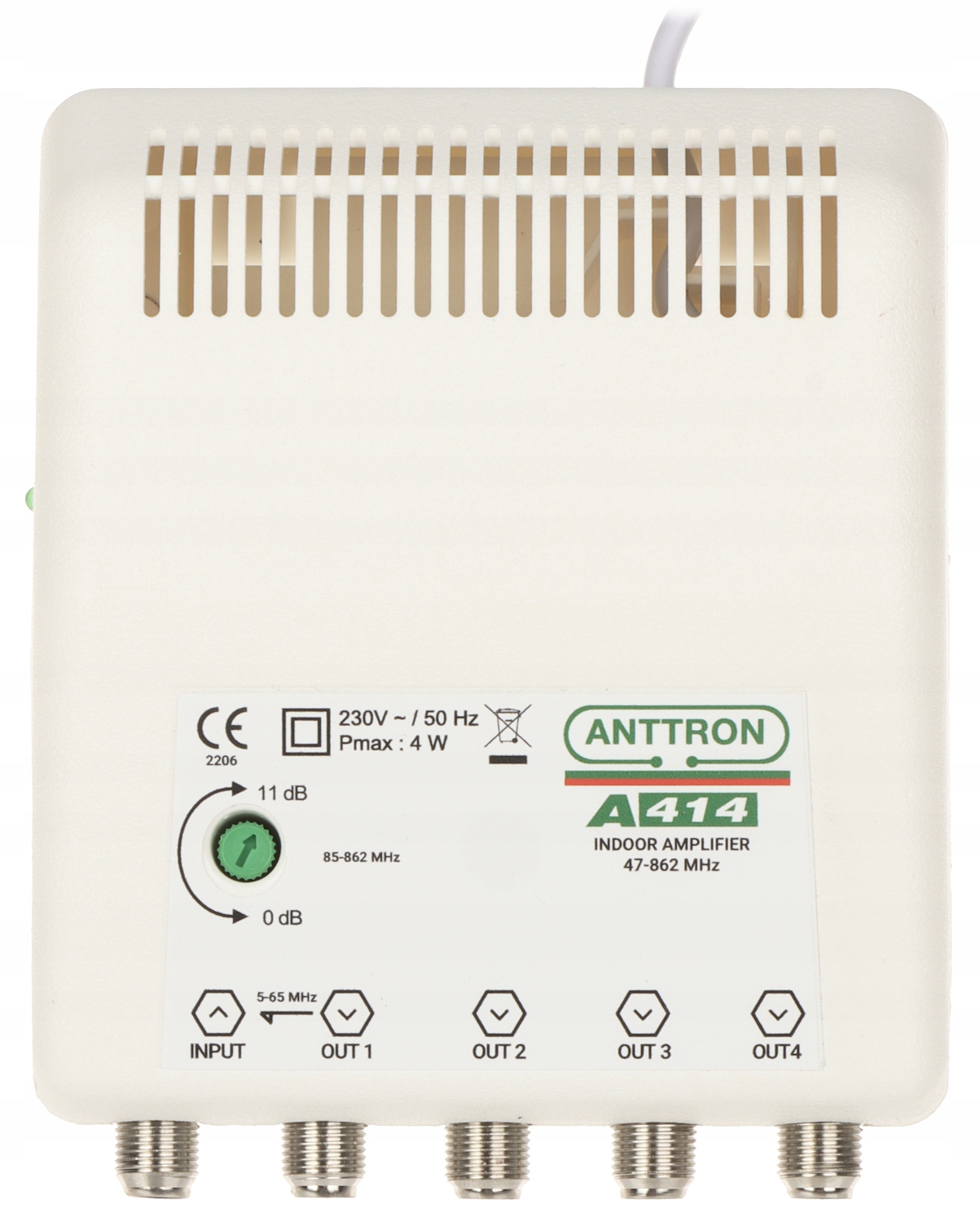 Усилитель WSS-412R предназначен для работы в кабельных сетях (за счет обратного канала) и индивидуальных антенных установках RTV. Питание осуществляется от встроенного блока питания с индикацией работы посредством светодиода. Усилитель WSS-412R предназначен для использования внутри помещений.