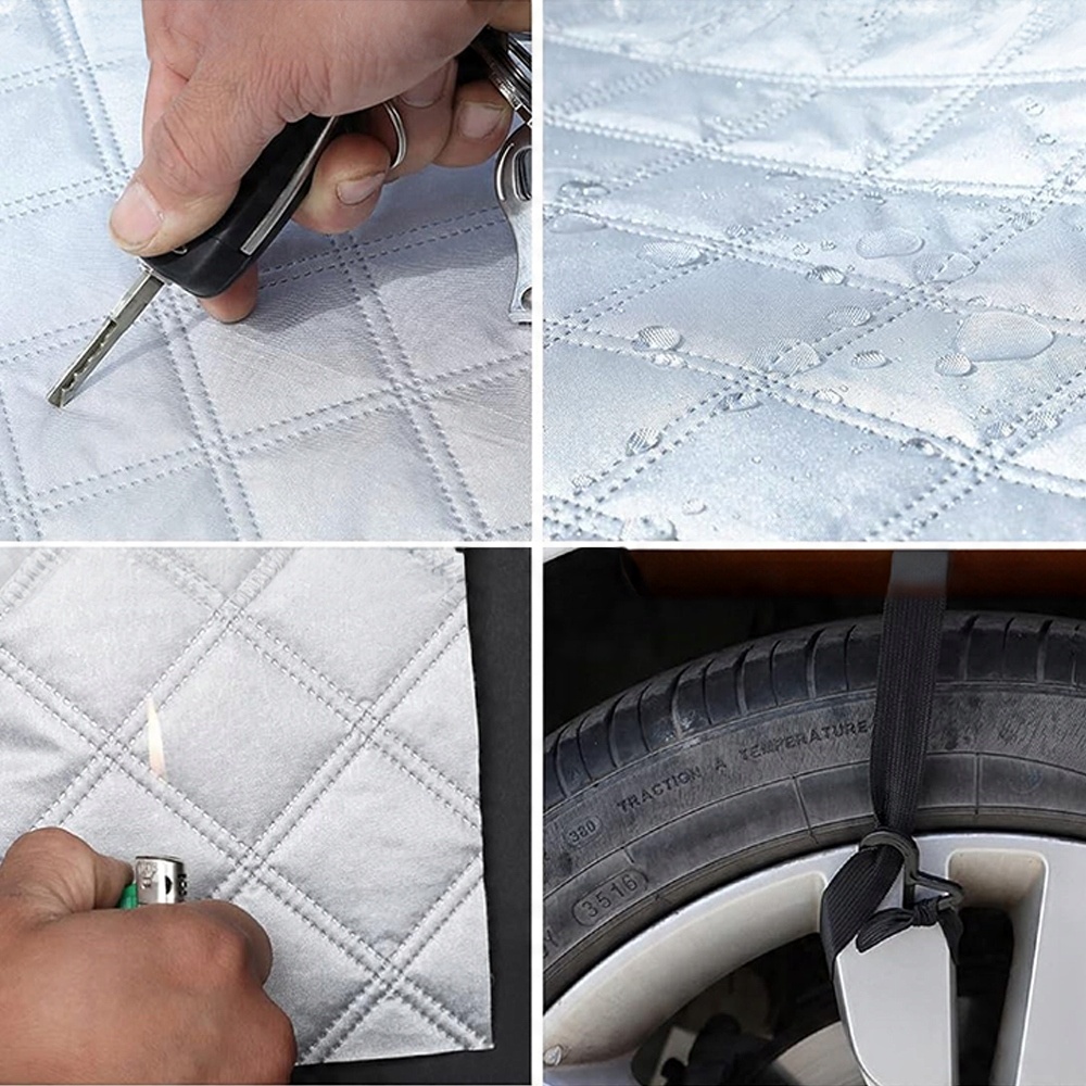 - Установка может помочь нам лучше прикрепить защитную крышку и предотвратить его сильные ветры блокировка солнечного света и ультрафиолетового излучения, чтобы понизить температуру внутри автомобиля летом; предотвращение пыли или листьев осенью; и предотвращение снега/льда/мороза зимой.