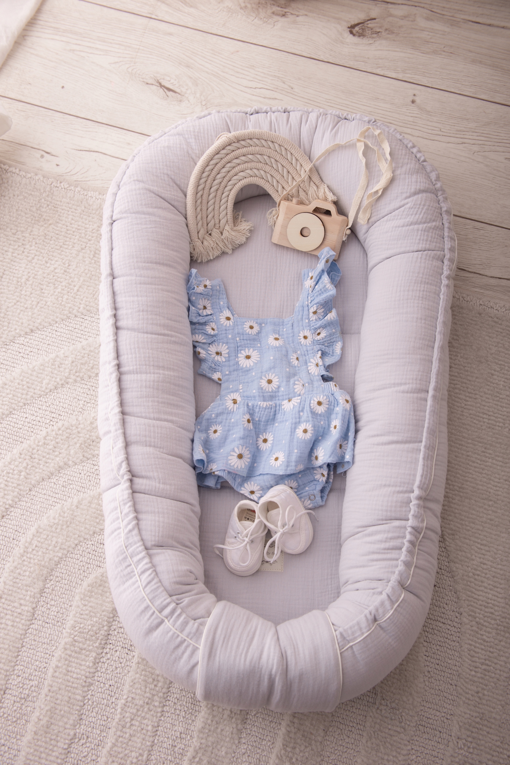 - Кокон шишит из двойного взгляда с муслиной высочайшего качества с большим весом. Между мы использовали специальную начинку, сделанную из пушистого силиконового шарика, также анти -аллергического.