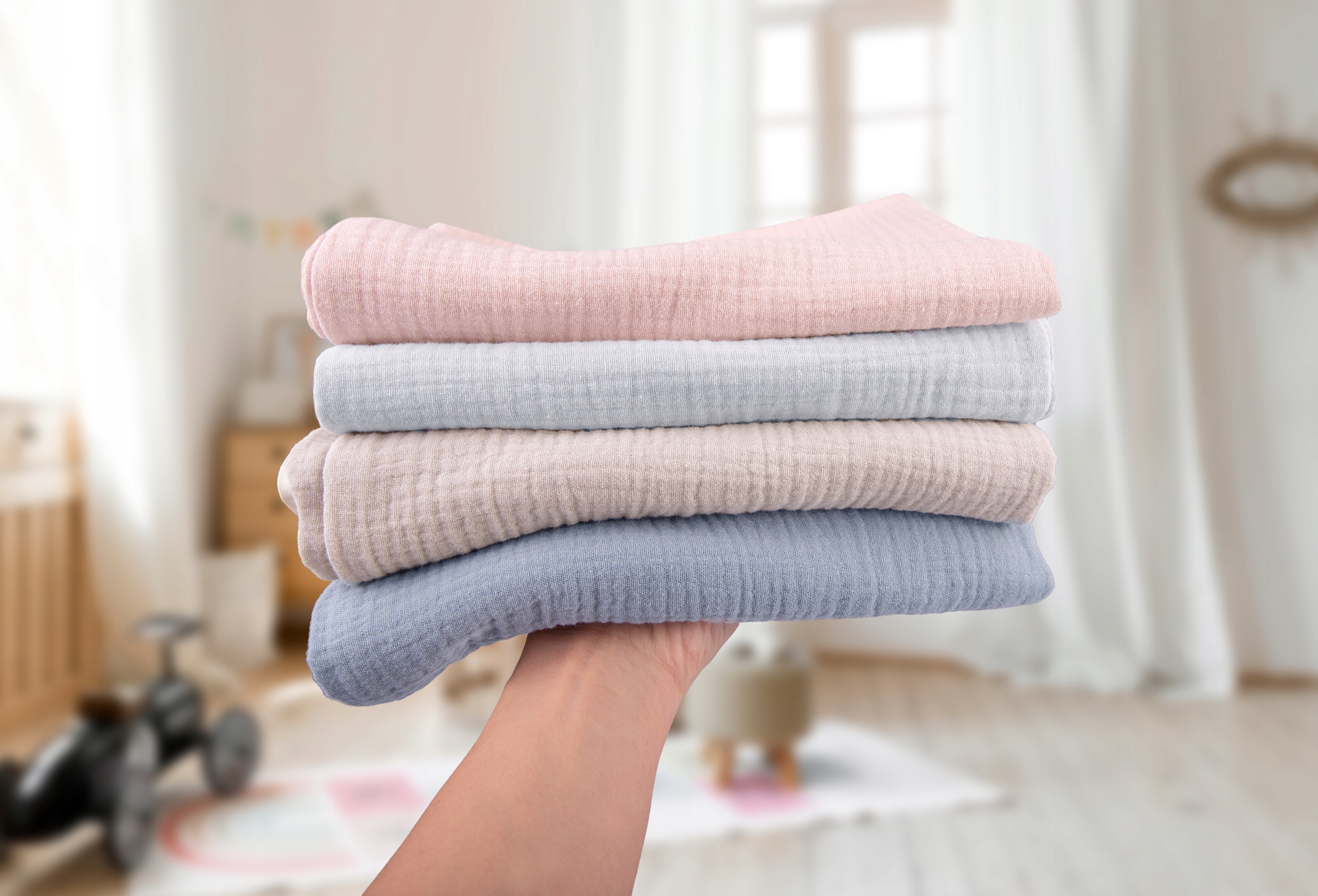 Muslin Cotton Double Guze - это премиальная ткань из 100% органического хлопка. Muslin Double Gazel -слегка созданная хлопчатобумажная ткань с двойной слой. Материал тонкий и деликатный, но не прозрачный. Ткань характеризуется очень хорошей проницаемостью воздуха. Муслин гигроскопичен. Муслиновая ткань тонкая и нежная гипоаллергенная идеальная для нежной кожи ребенка.