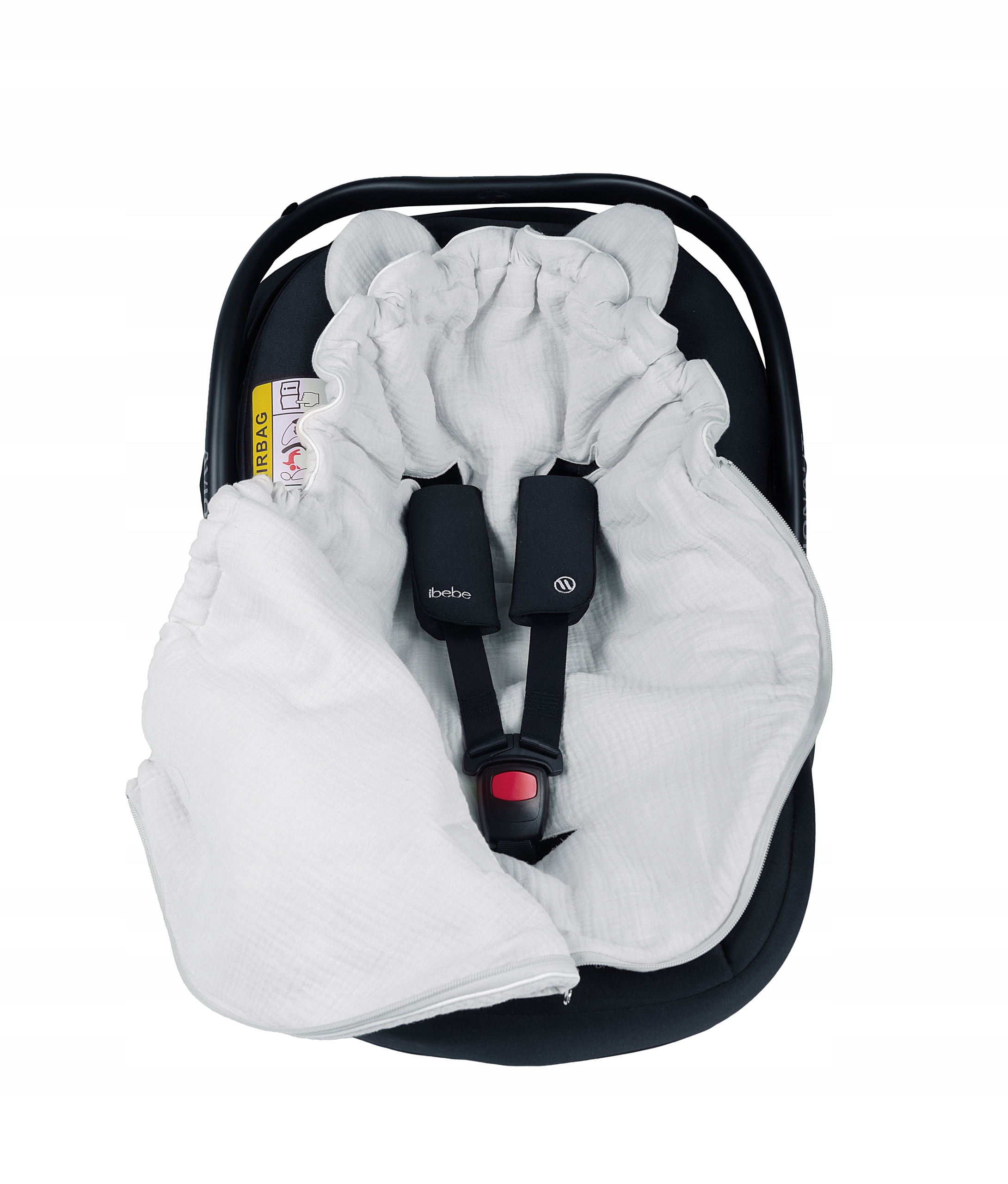 - У него универсальные отверстия для ремней безопасности, чтобы он не двигался в автокреслах, а ребенок безопасно закреплен. холод, ветер и дождь.