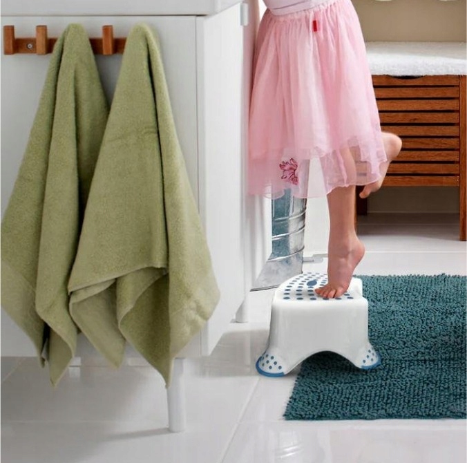 степень особенно полезна в ванной комнате, так что дети имеют легкий доступ к раковине, в комнате на полках и т. Д. Детские