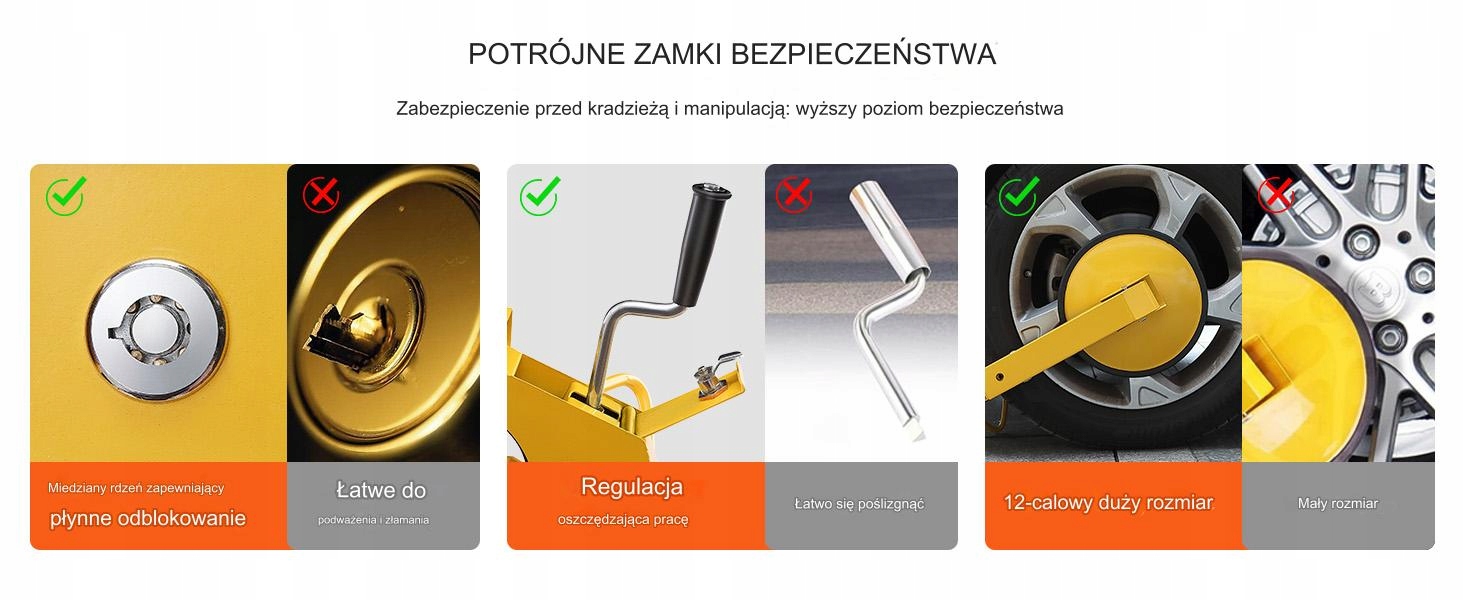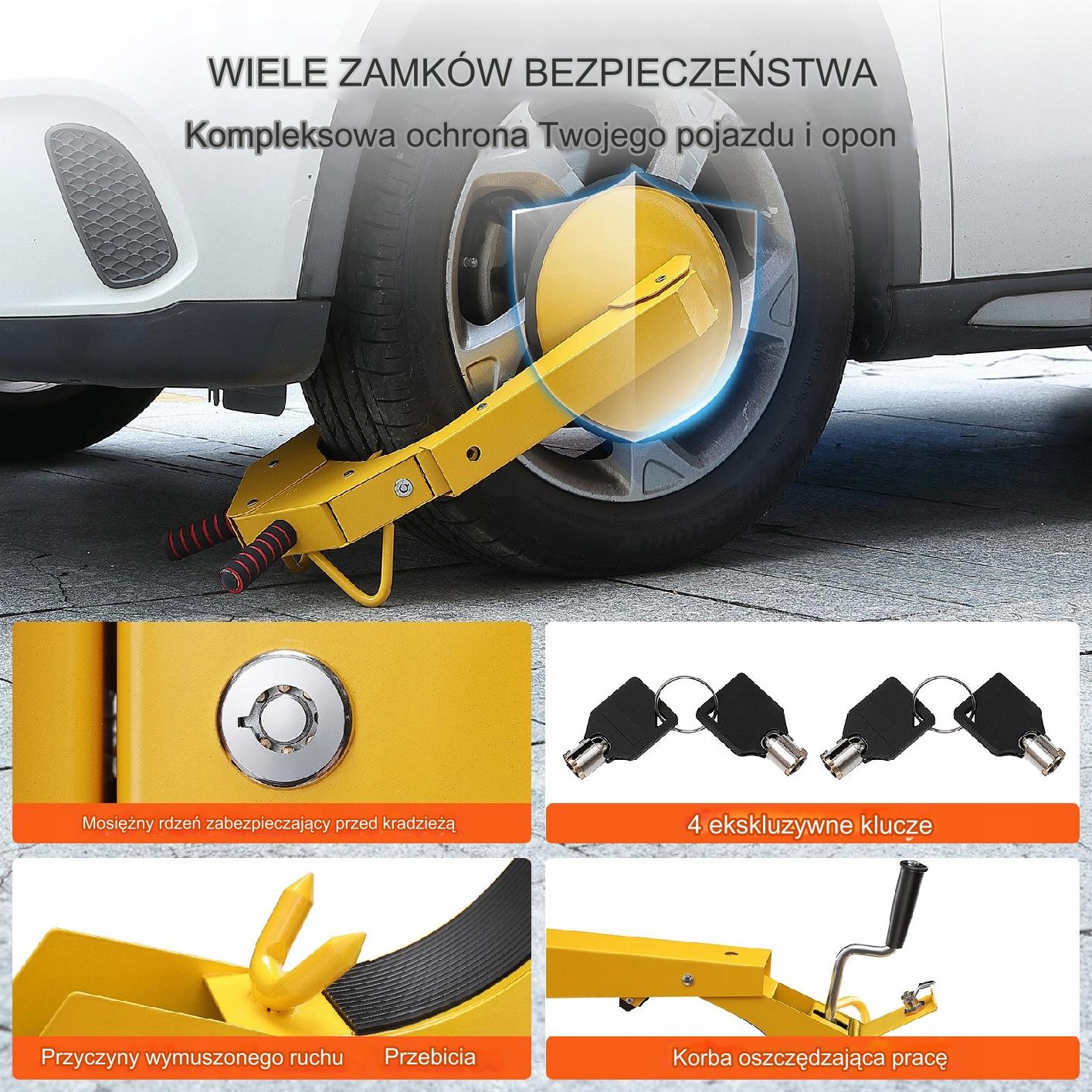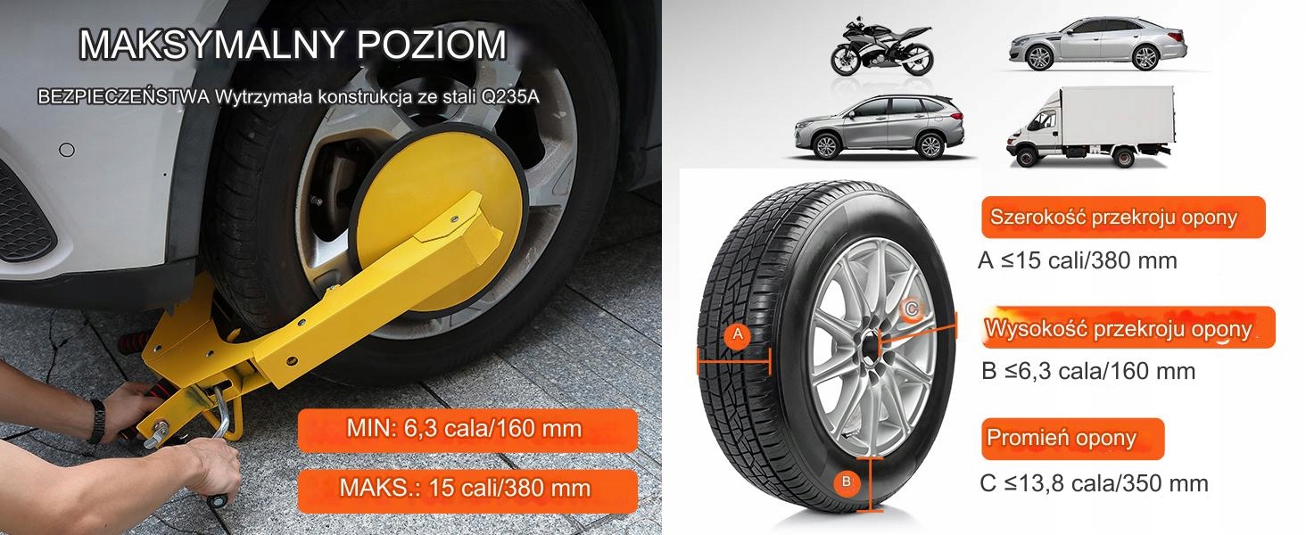 антирадикальная блокировка на колесах является надежной защитой, которая эффективно защищает транспортные средства от попыток кражи. Благодаря твердому дизайну и универсальному размеру, он подходит для большинства шин, предлагая высокий уровень защиты. Продукт идеально подходит для легковых автомобилей, прицепов и прицепов для кемпинга.
