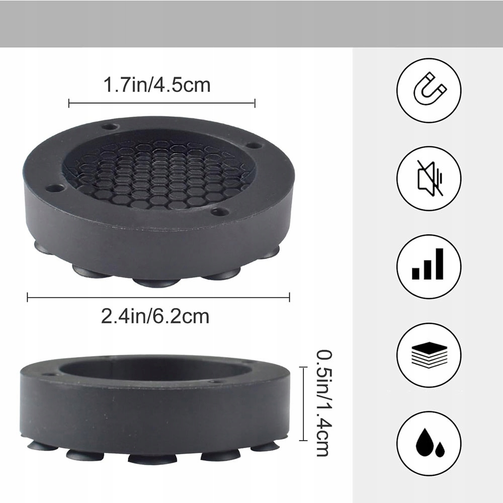 2 [Сильная адсорбционная конструкция] нижняя часть антиваибрационной коврики имеет уникальные 19 сахаров с сильной адсорбцией. Не -SLIP и анти -вибрация. Он сильно держит стиральную машину на месте и предотвращает скольжение стиральной машины или мебели. Просто поднимите каждый угол стиральной машины, сдвиньте подушечки под каждую ногу стиральной машины, а затем осторожно опустите ноги устройства.