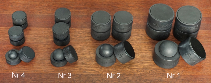 Первые аватарские аудиофузы имели металлические кольца с керамическими шариками, но дальнейшие исследования показали, что эти материалы имеют очень средний эффект. Металл и керамика укрепите и упростите цвет и ограничите разрешение. Текущие версии рецепторных ног несравненно лучше, как с точки зрения колец, так и с шариками, они дают гораздо больше деталей и более естественный цвет. Кроме того, оставление свободы передвижения на твердой металлической земле не является лучшим решением, потому что его микрочи генерируют свои собственные вибрации. Поэтому в наших ногах шарики все еще установлены.