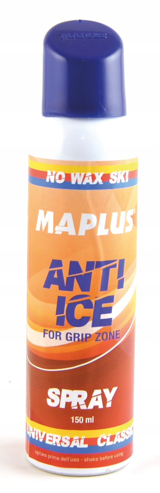 Spray lubricant, or actually a measure preventing sliding, used in cross -country skiing - more precisely in the classic style, the product of the Italian company maplus (formerly Briko -Maplus), this is the Anti ICE model (catalog number MW00732) with a capacity of 150ml for use in running skis from so -called scoop and not only (for grip зона).