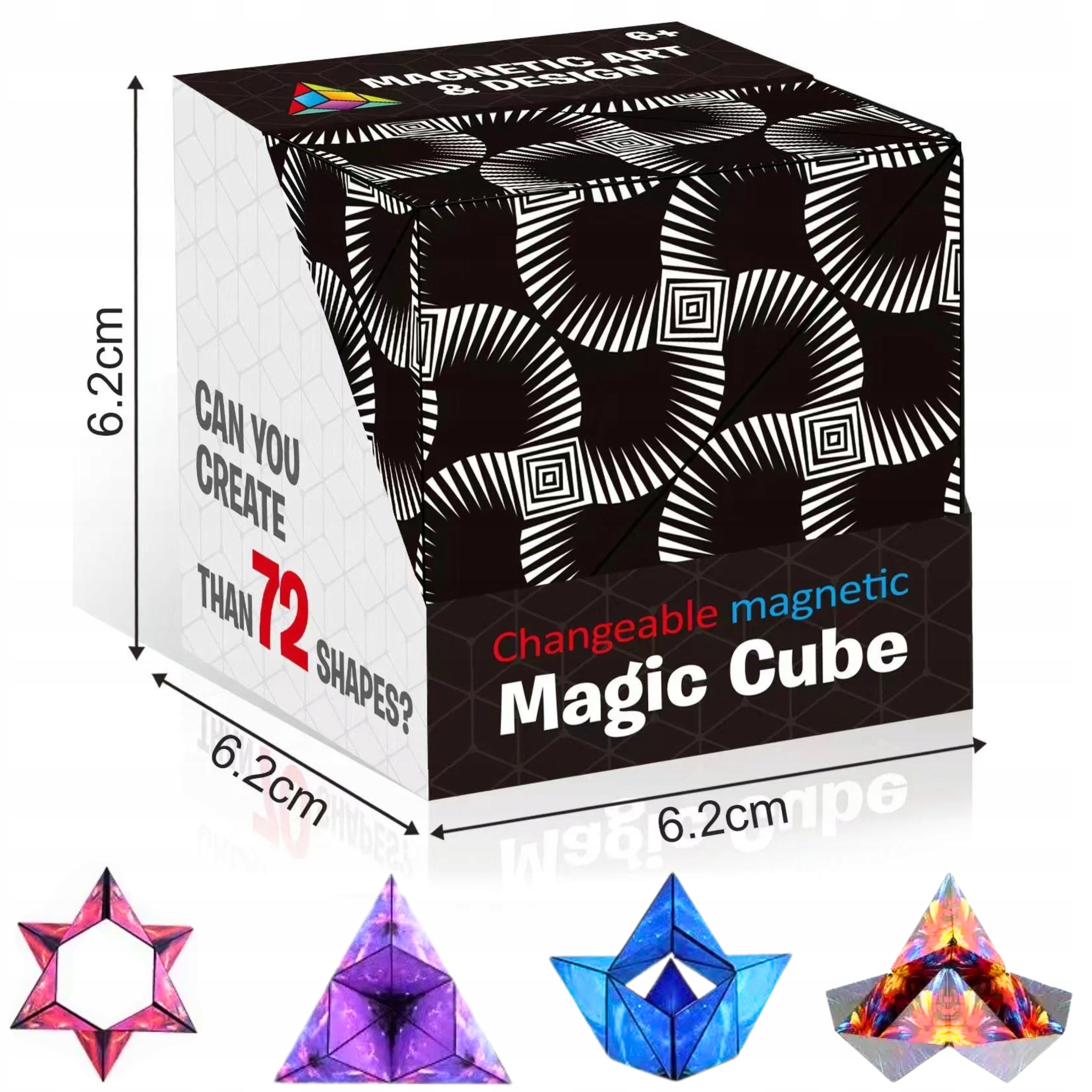 - Кубик, оснащенный 36 магнитами, предлагает 72 различные комбинации форм. Это головоломка, которая никогда не наскучивает: она постоянно бросает вызов и приносит радость от создания новых форм.
