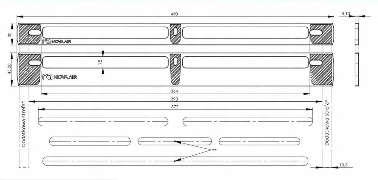 * В случае нестандартных вентиляционных отверстий , винты можно устанавливать в дополнительной зоне, отмеченной штриховкой на чертеже рамы.