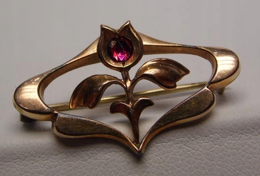 АНТИЧНА БРОШКА КВІТКА З РУБІНОВИМ КАМЕНЕМ РОЗЕТКА.