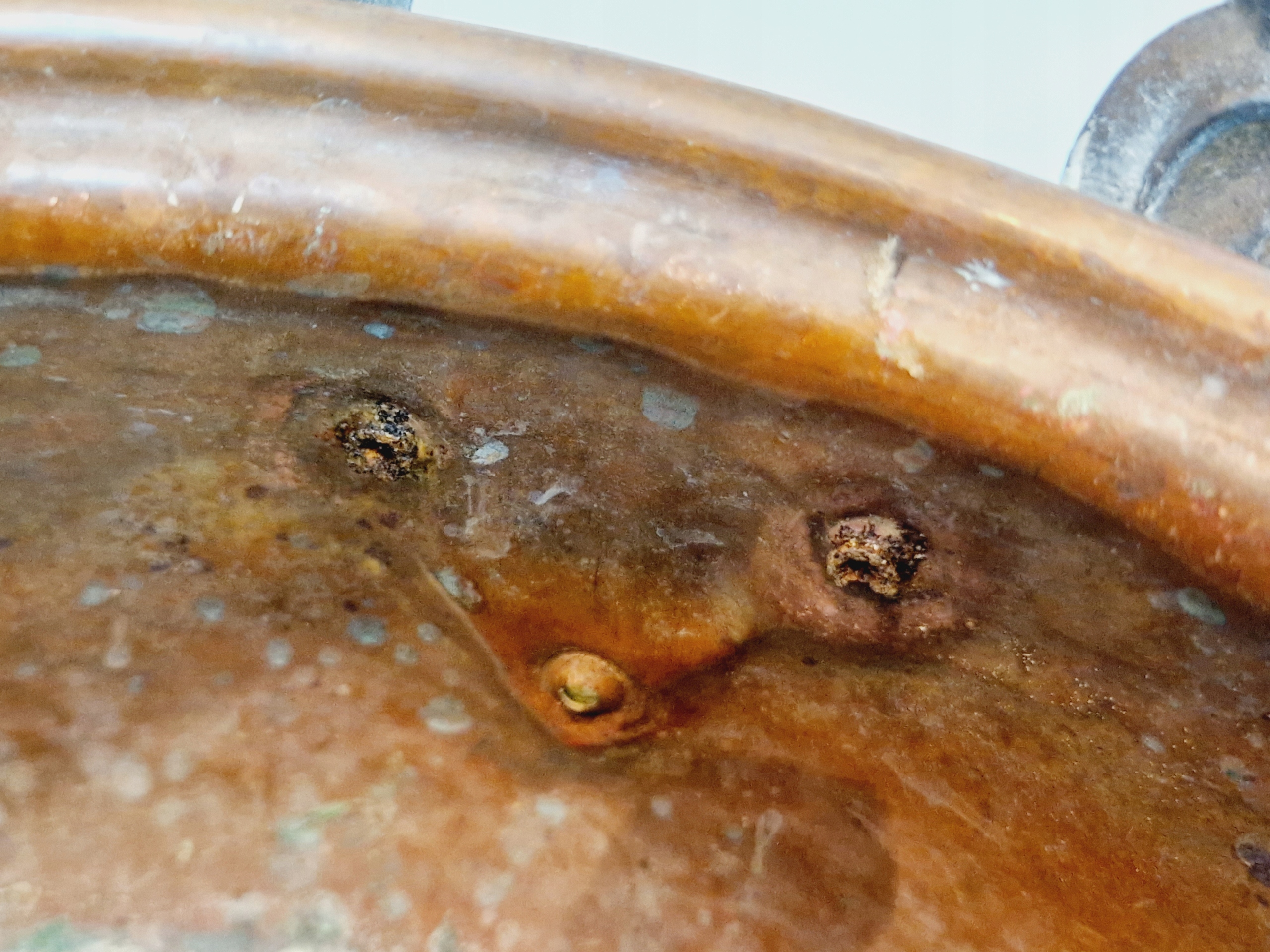 АНТИЧНА МІДНА ПОСУДИНА ХІХ-ХХ ст., ГОРЩИК, КРИШКА ДЛЯ КВІТІВ /419