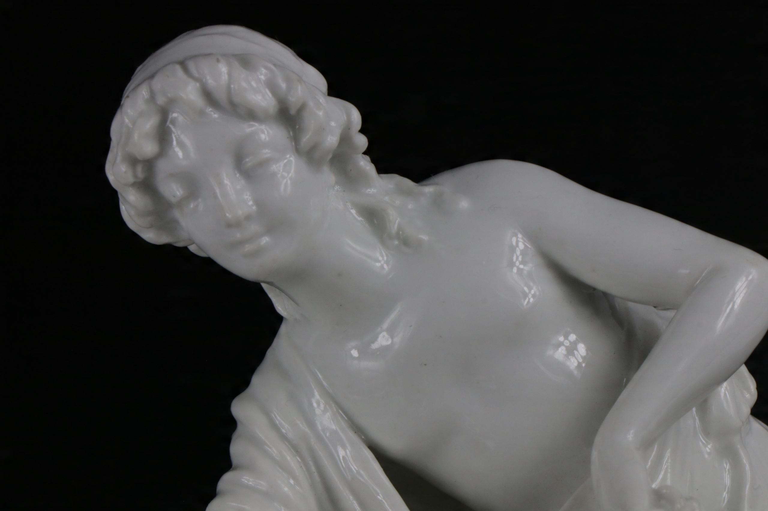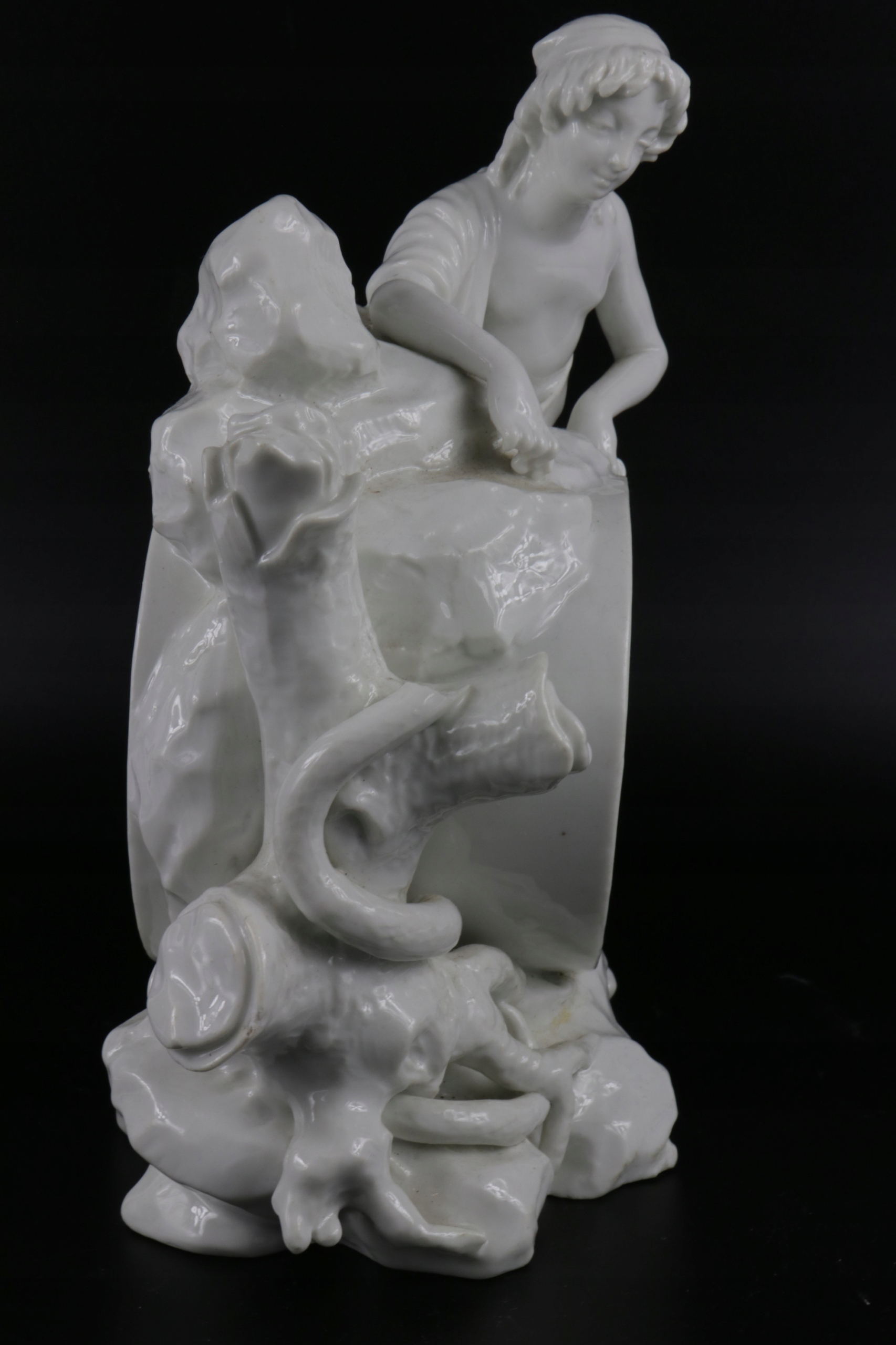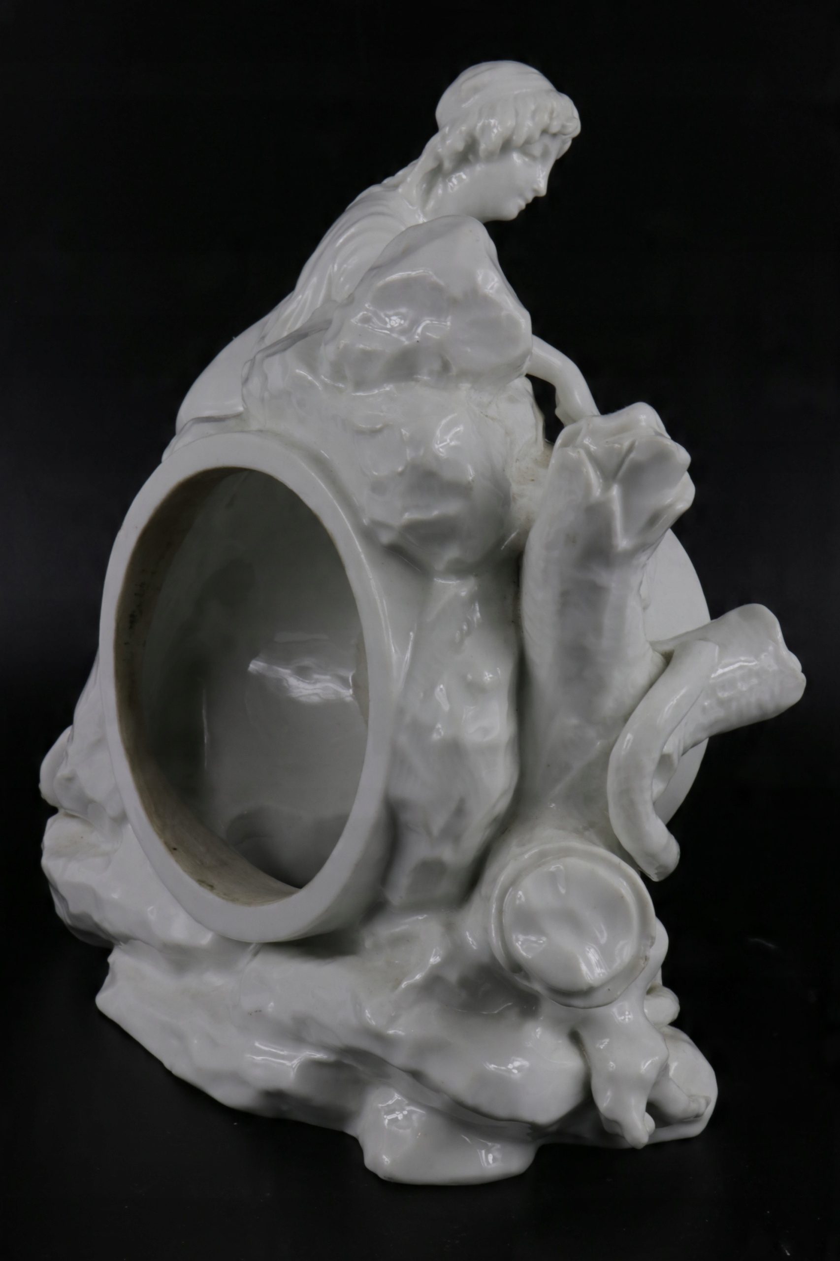 Интересный фигурный фарфоровый корпус часов. Фигура, относящаяся к Древней Греции, молодой человек, опирающийся на камень.