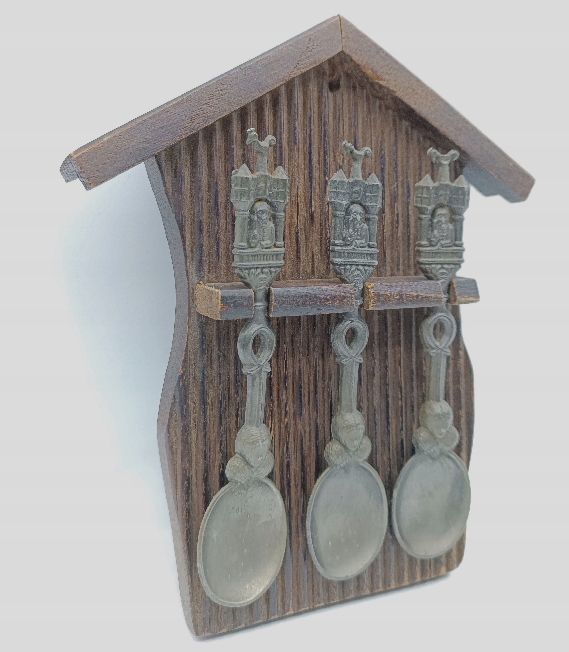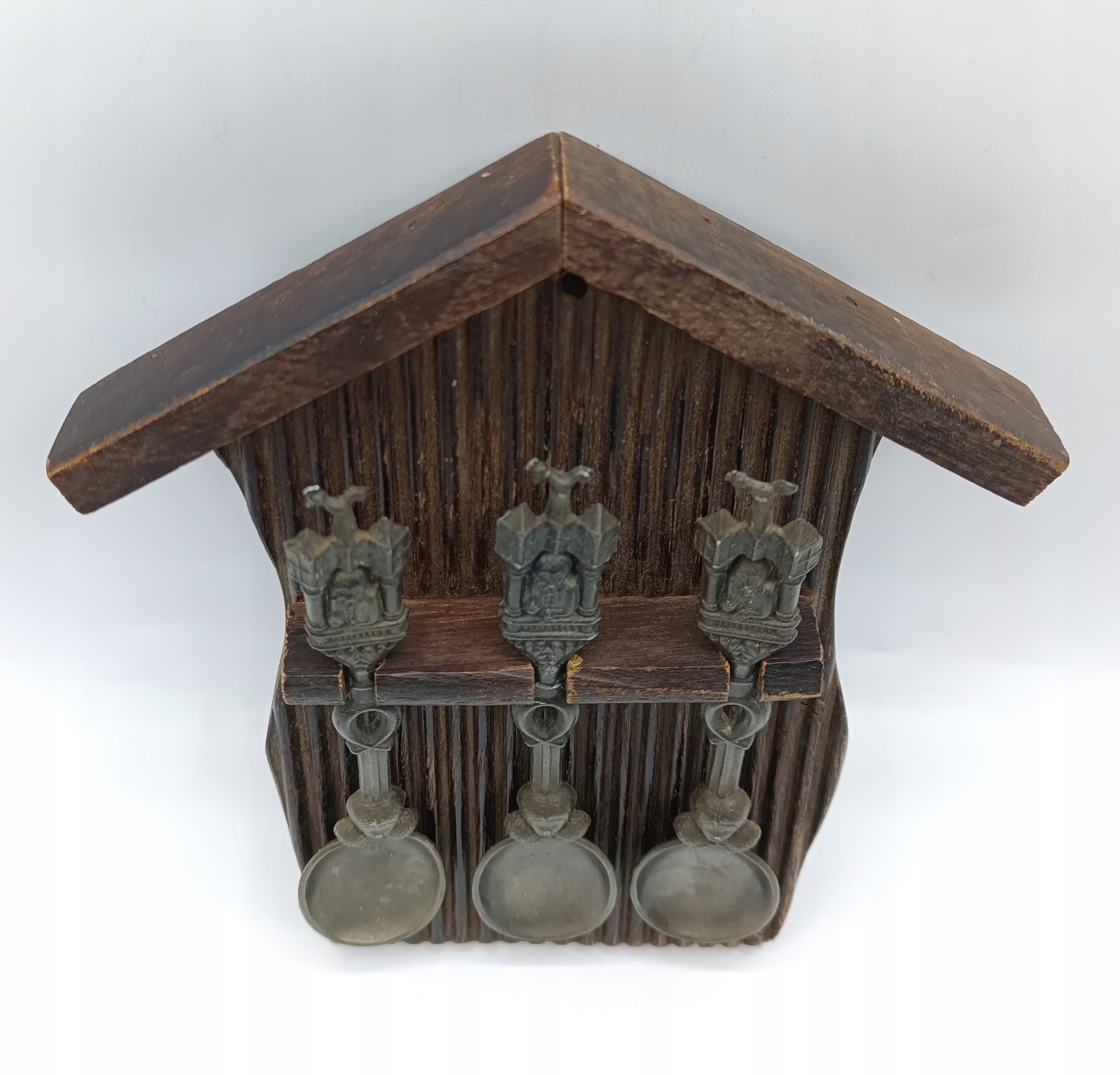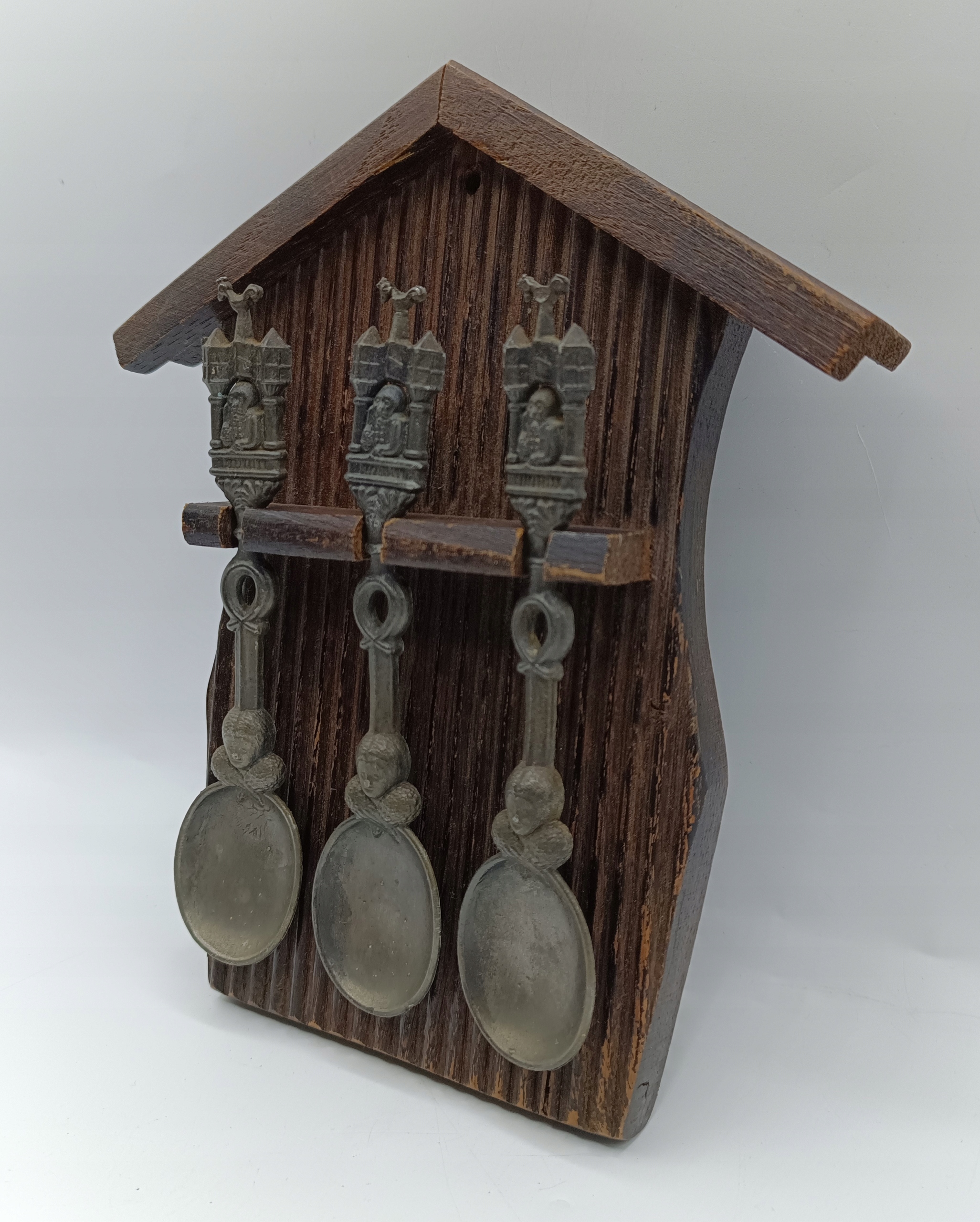 Это декоративные старинные английские жестяные ложки, подписанные, вешалка/домик из дерева, коллекционный набор!