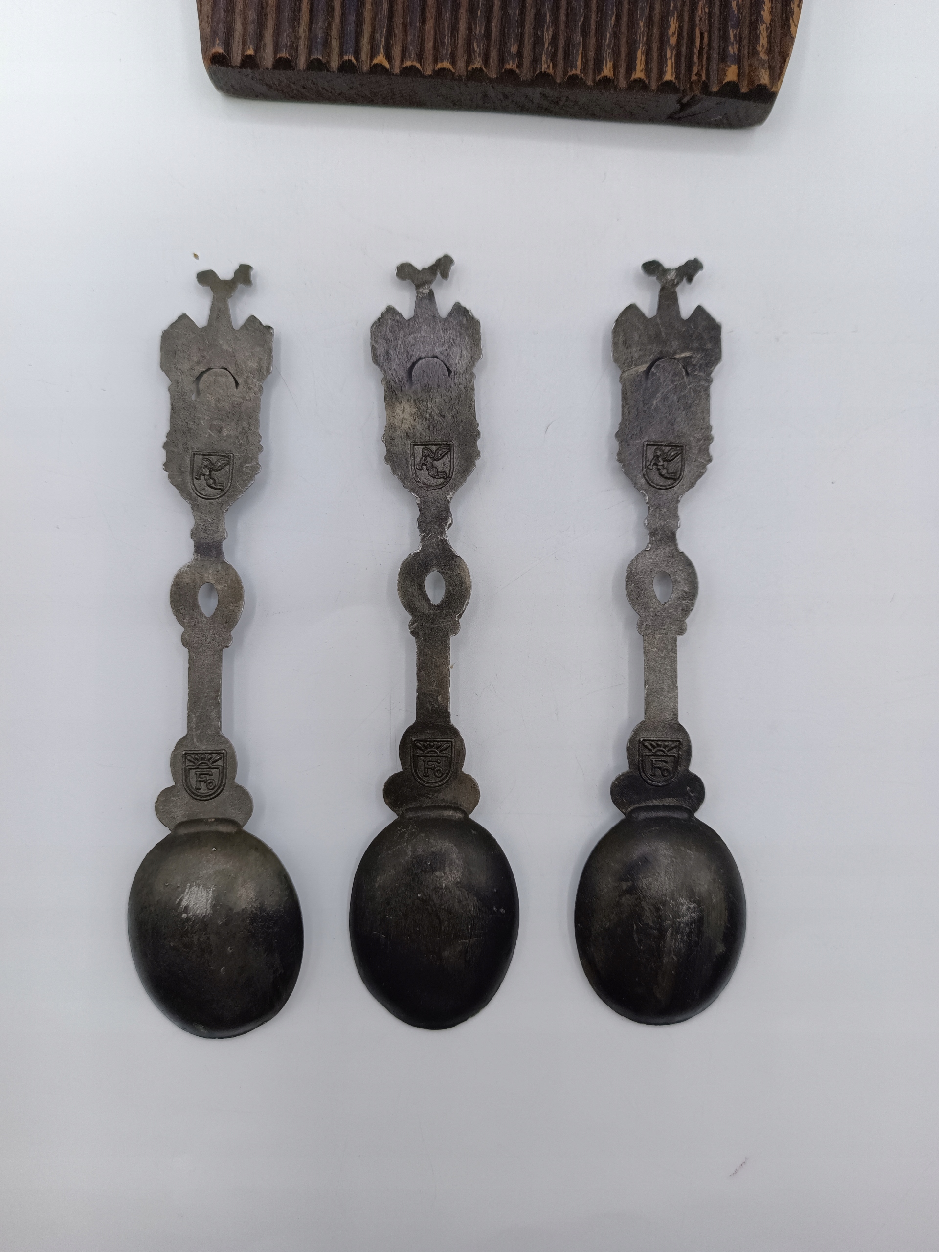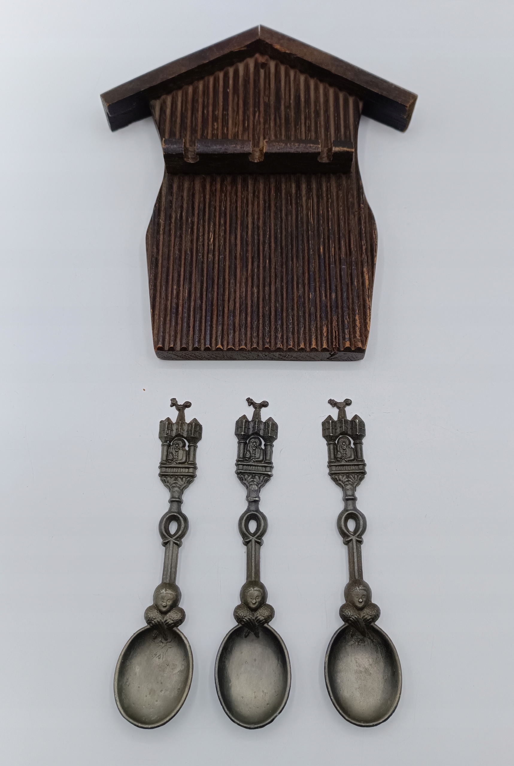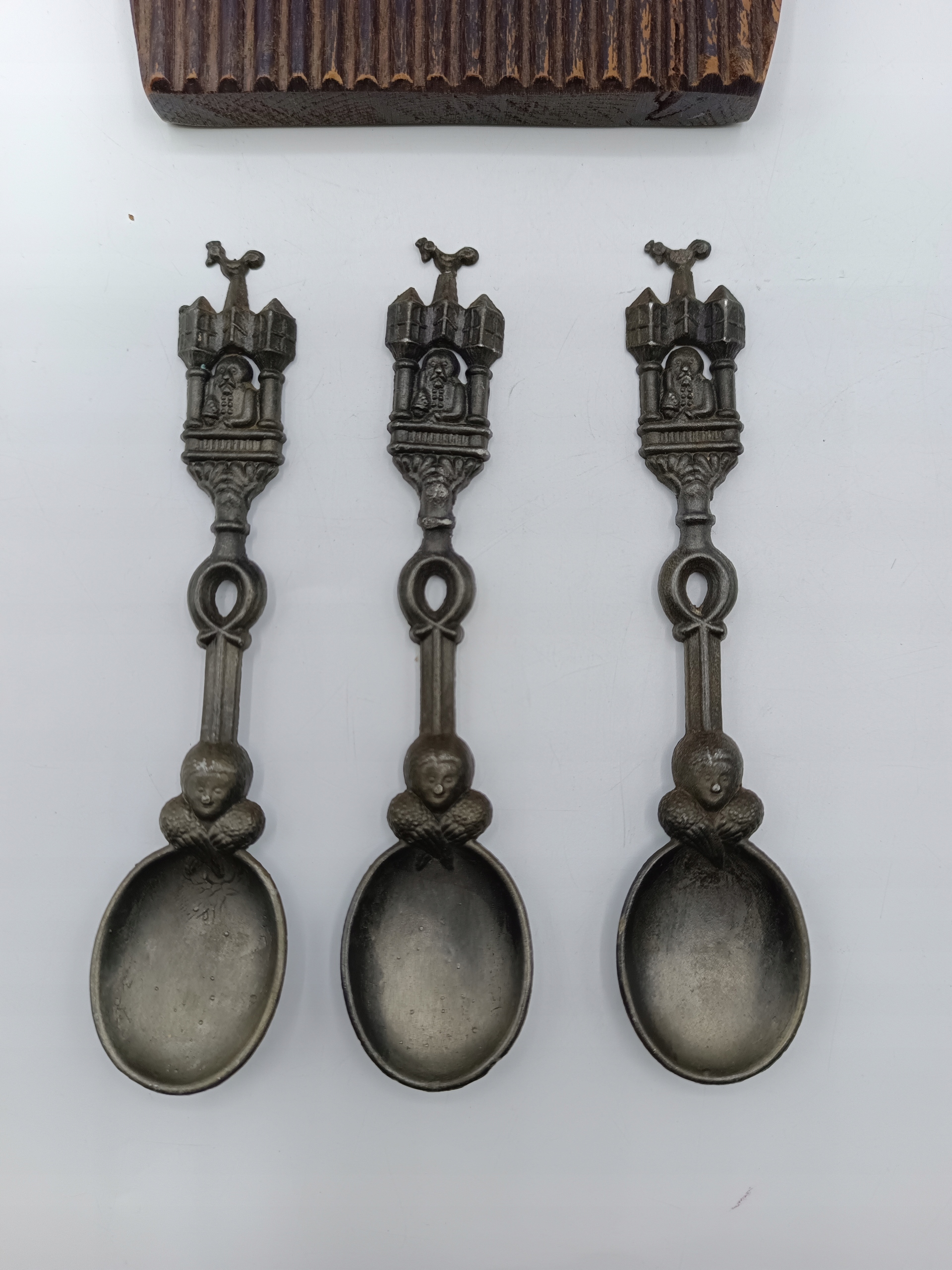 Ложки антикварные оловянные, подписанные, на деревянной вешалке - предметы коллекционирования,