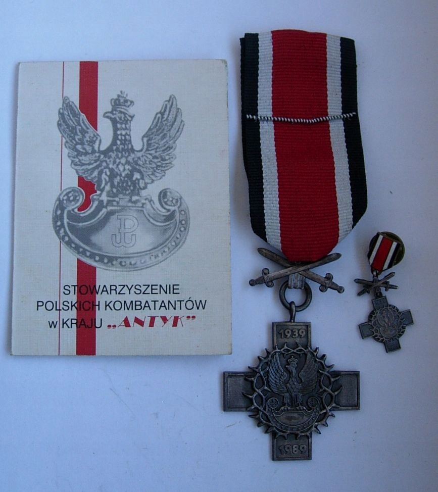 АНТИЧНЫЙ КРЕСТ с мечами + МИНИ + удостоверение личности Третьей Польской Республики