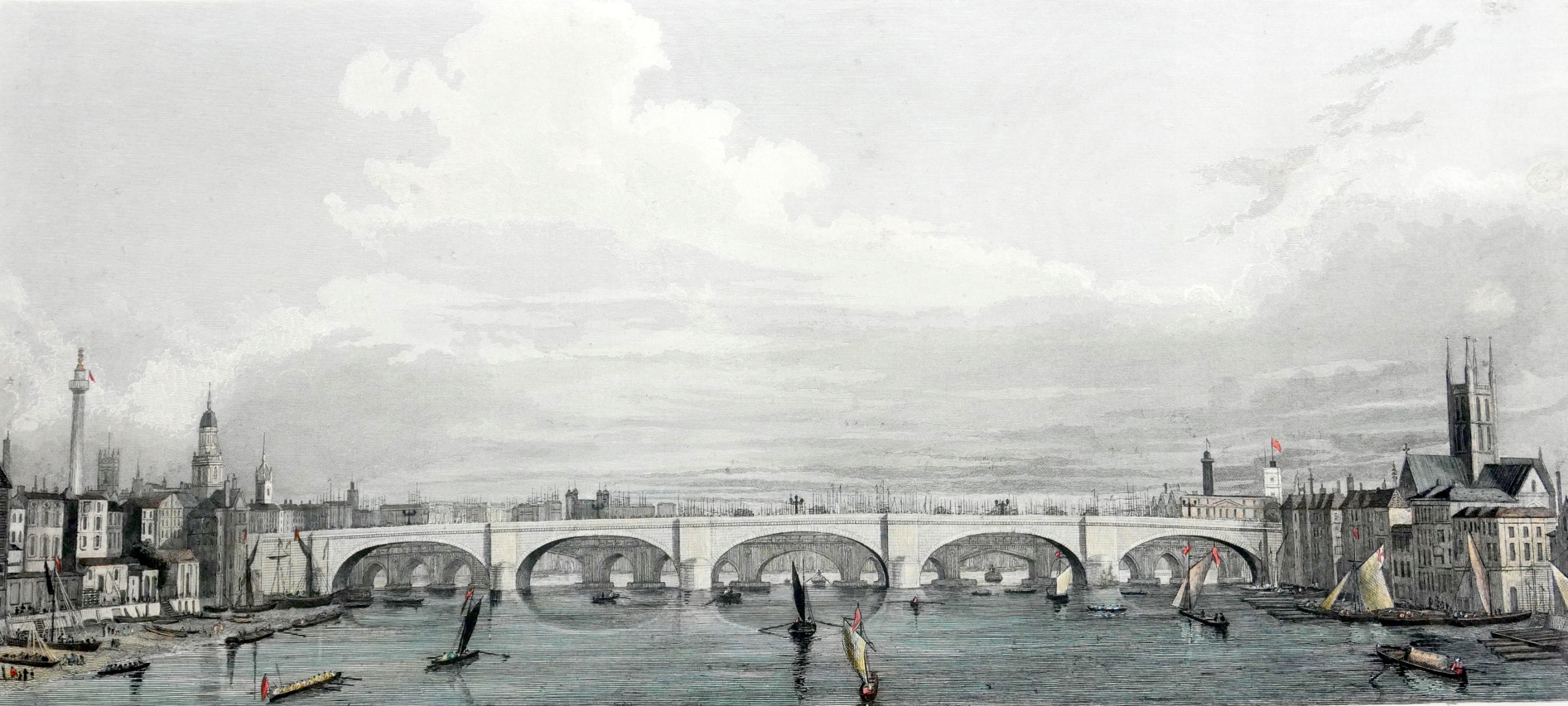 АНТИЧНІСТЬ - ВЕЛИКА ЛОНДОНСЬКА ГРАВІЮВАННЯ НА СТАЛІ - НОВИЙ ЛОНДОНСЬКИЙ МІСТ 1831 РОКУ