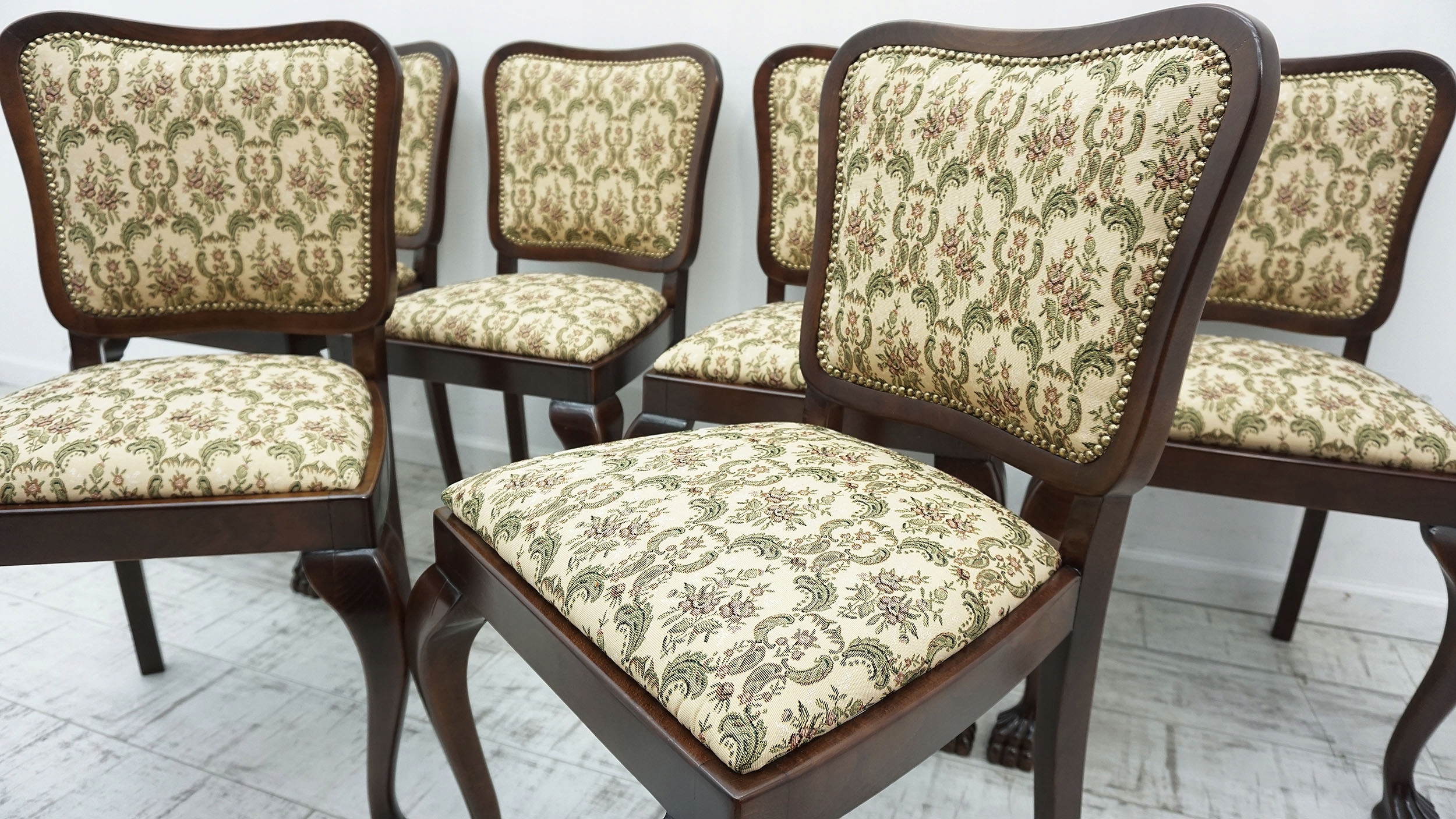 Представляем красивый обеденный гарнитур в стиле неоренессанс, состоящий из комода – буфета, витрины – шкафа, стола и шести стульев. Мебель была тщательно отремонтирована с особым вниманием к деталям. Богатая текстура дуба и бука была подчеркнута благодаря использованию морилки теплого коричневого оттенка. Столярные изделия покрыты множеством слоев полуматового лака, благодаря которому древесина эффективно защищена от внешних факторов.