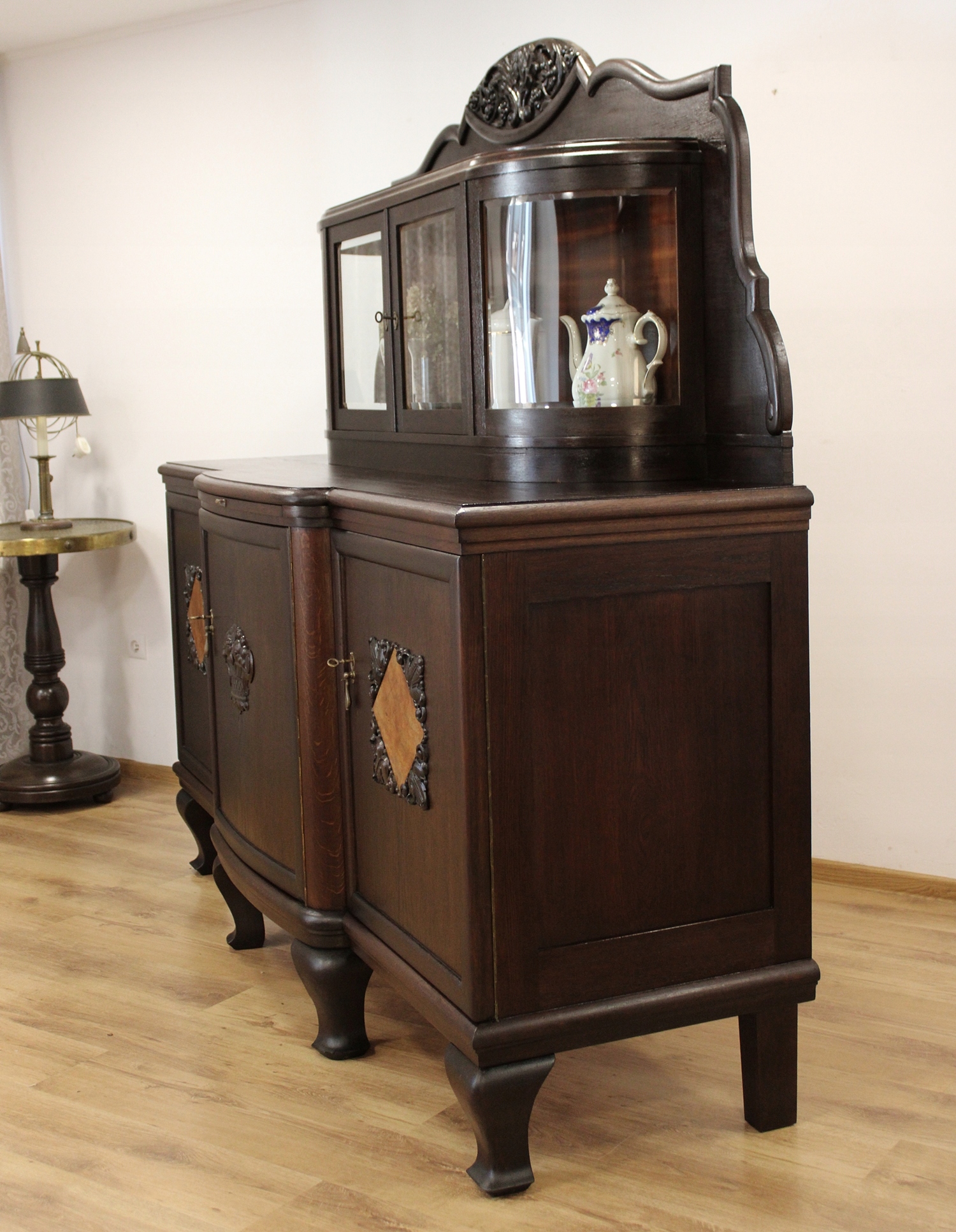 Состояние хорошее. Мебель готова к использованию. Обновились внешние поверхности и интерьер мебели. Мебель уже старая и следы прошлого, не влияющие на ее эстетическое восприятие, являются доказательством подлинности мебели. Сервант можно сразу перенести в квартиру.