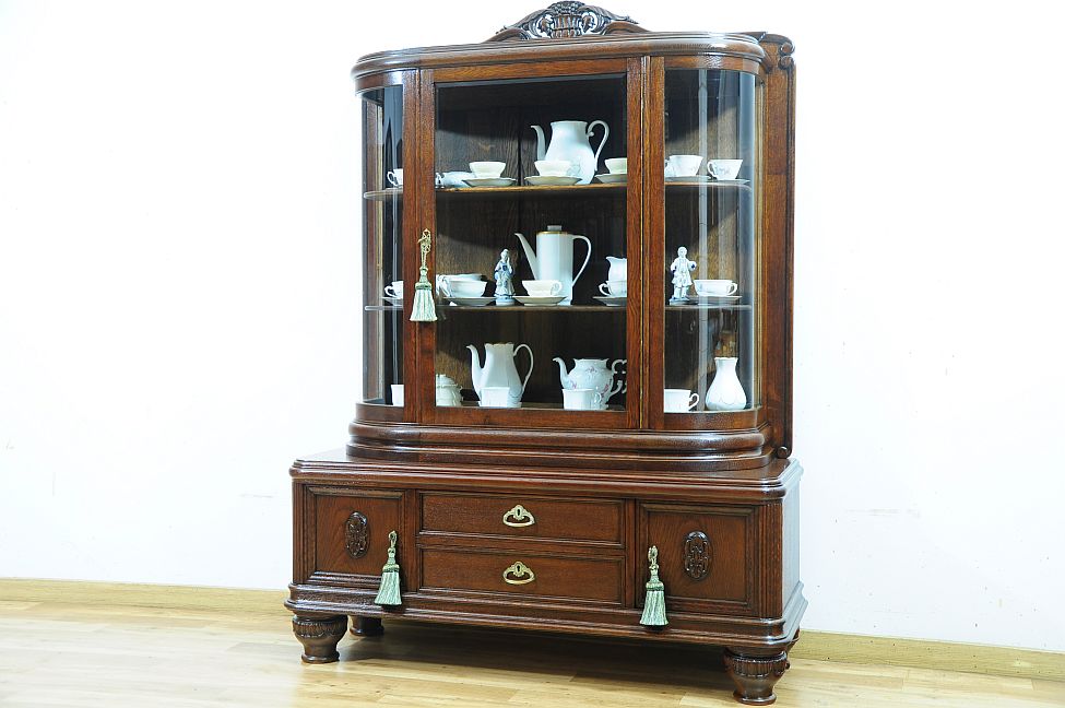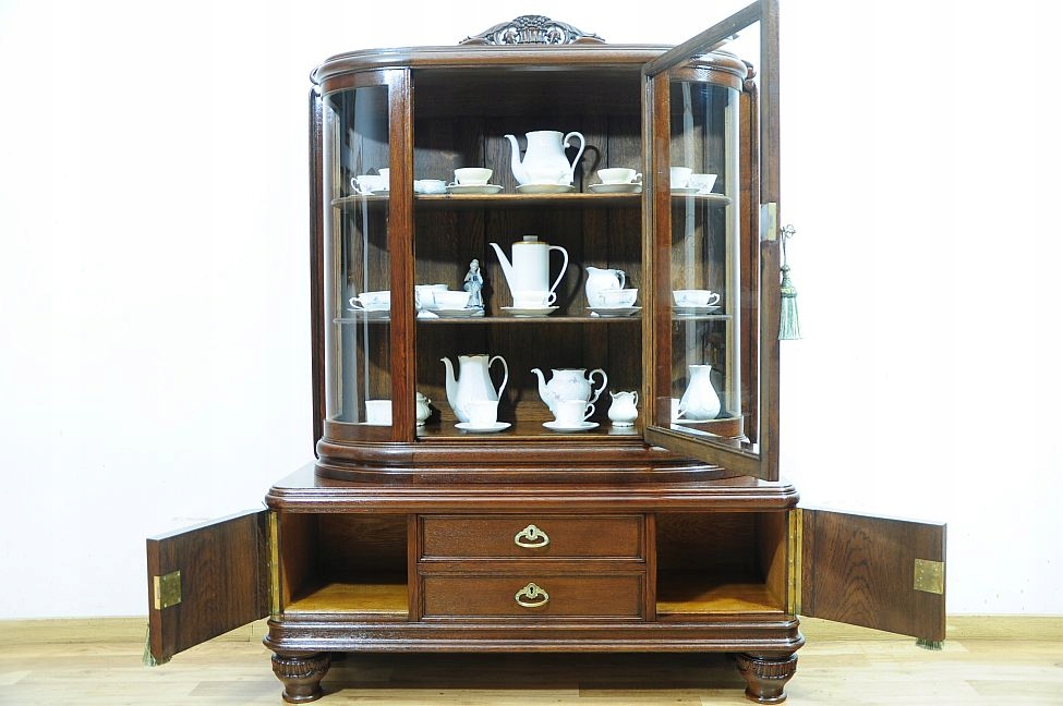 антиквариат был глазирован с кристаллическими стеклянными стеклами, боковые окна слегка согнуты. H2> 2 деревянные полки были помещены внутрь. h2>