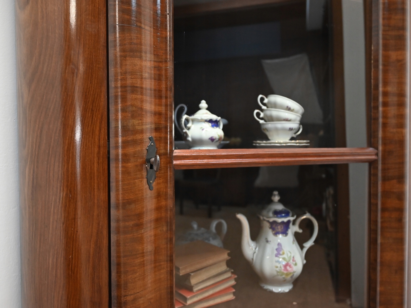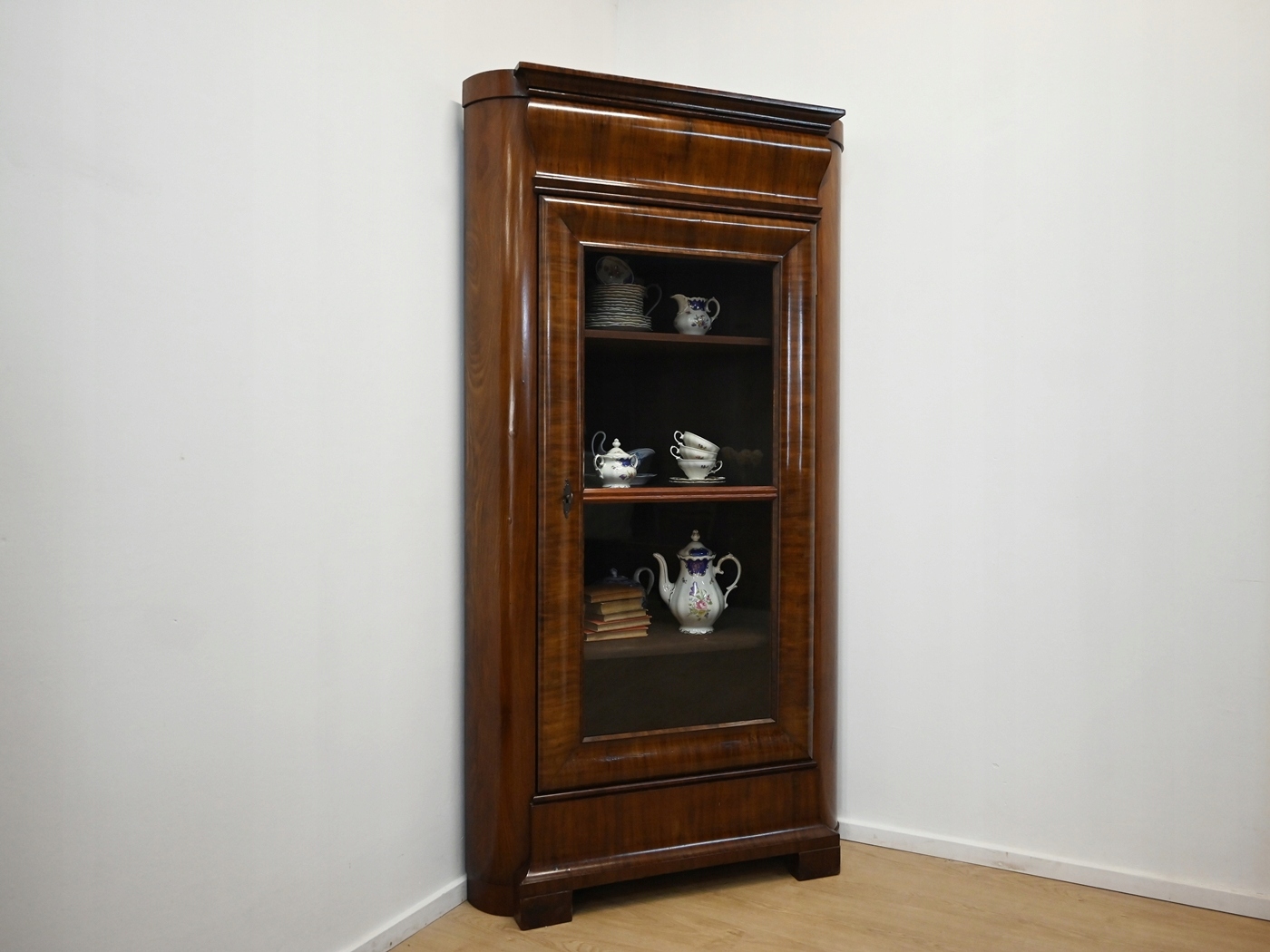 АНТИЧНАЯ МЕБЕЛЬ Угловой шкаф из красного дерева примерно 1880 года.