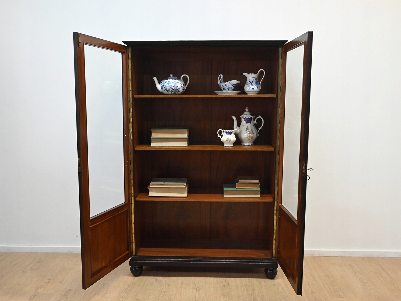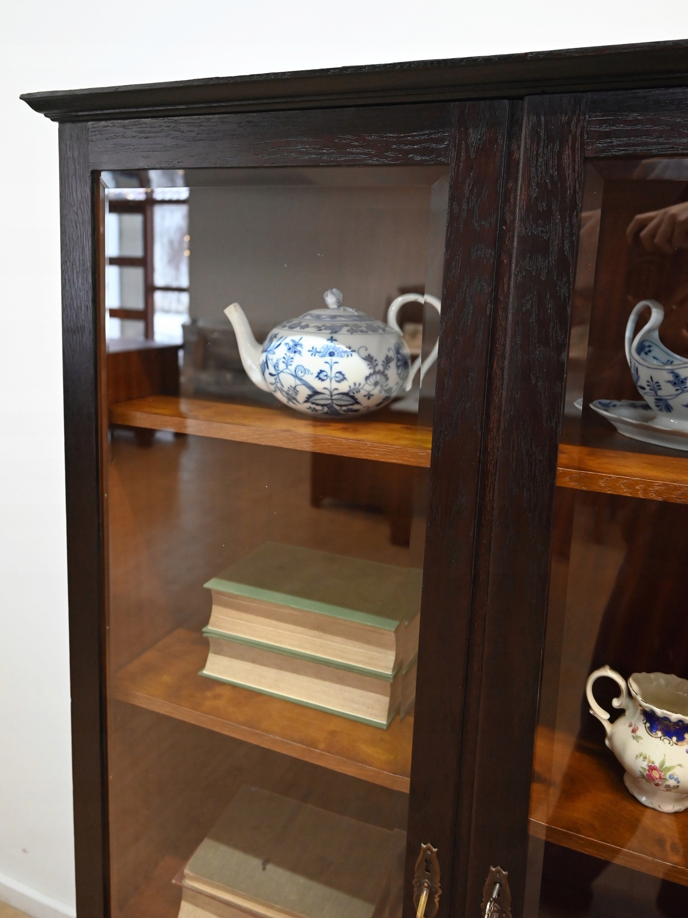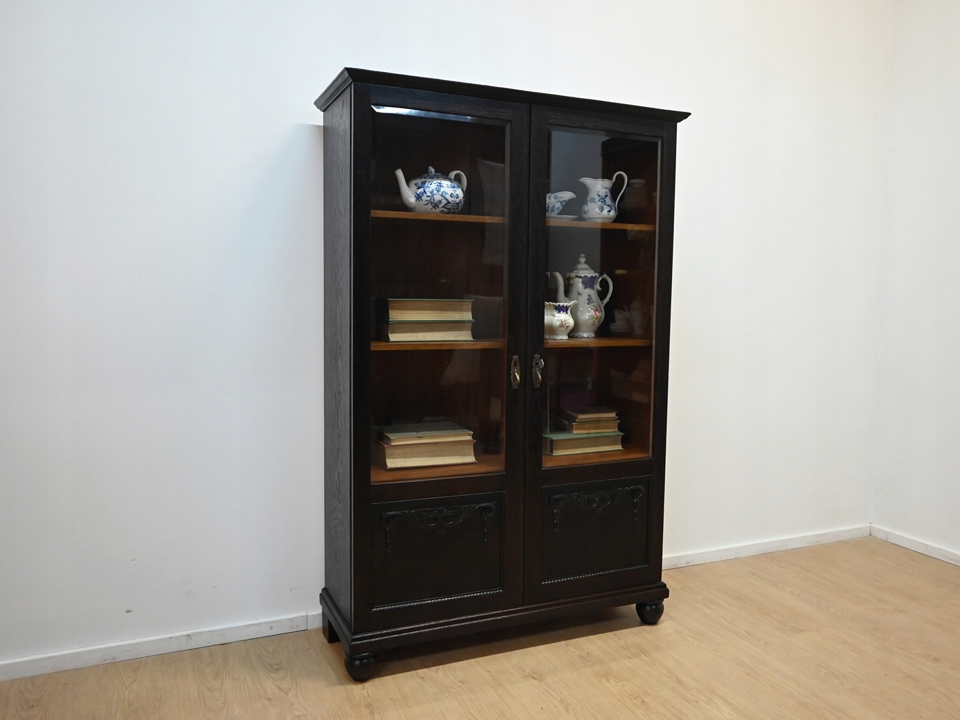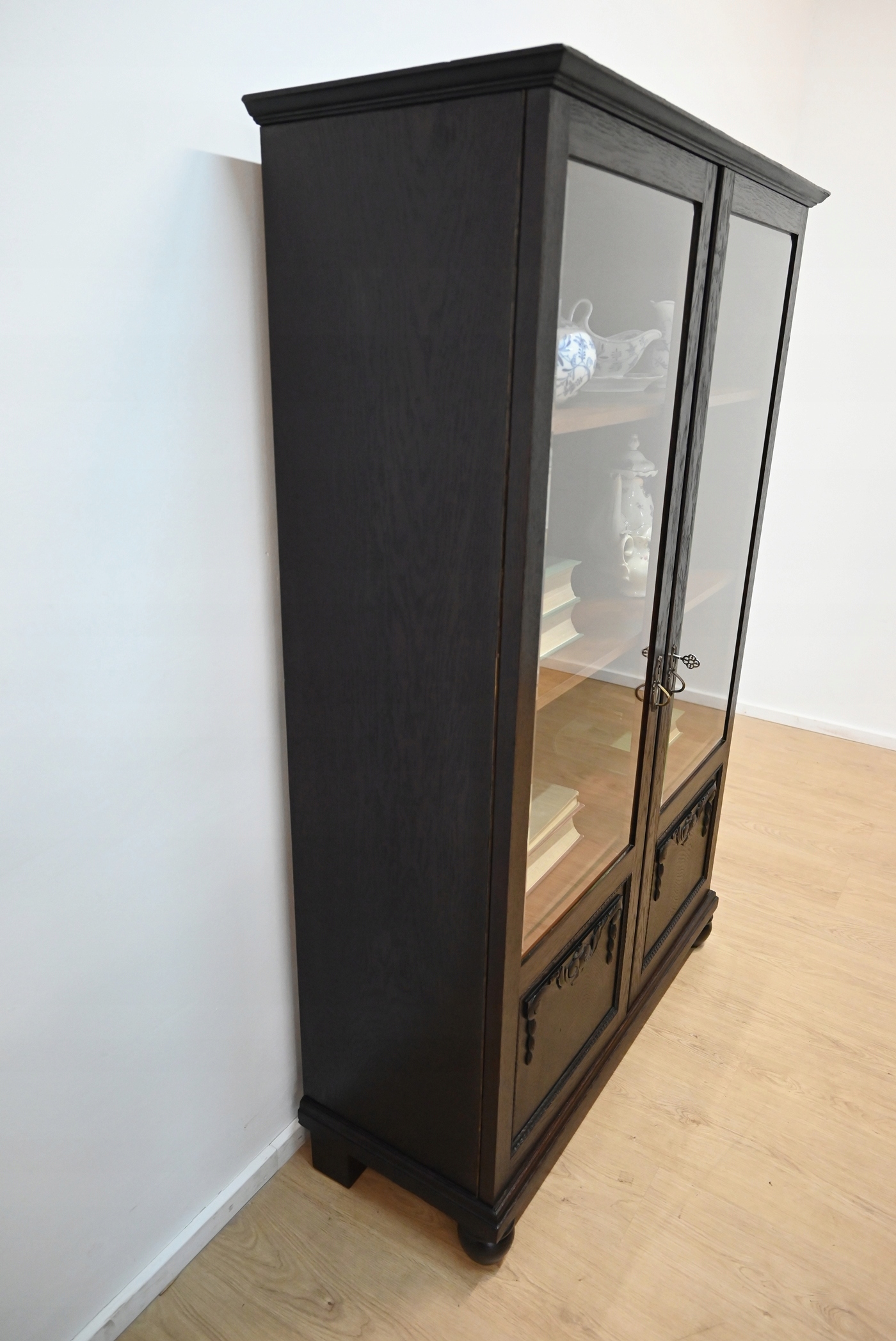 Очень хорошее состояние. Мебель готова к использованию. Обновились внешние поверхности и интерьер мебели. Мебель уже старая и следы прошлого, не влияющие на ее эстетическое восприятие, являются доказательством подлинности мебели. Витрину можно сразу разместить в квартире.