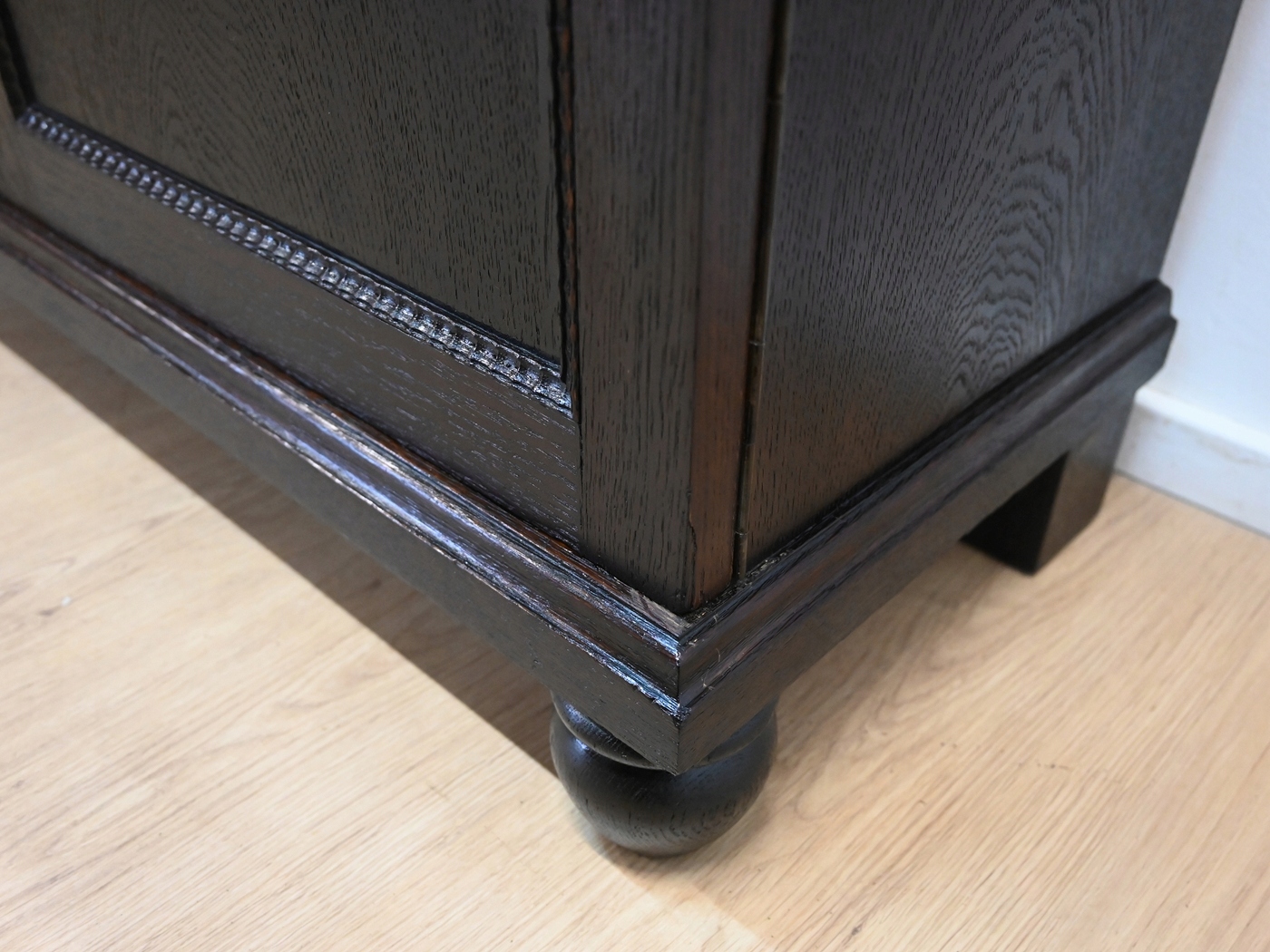 Следы древесных червей, небольшие количества на задней и нижней части. Мебель пропитана препаратом против короеда. Никакого активного короеда.
