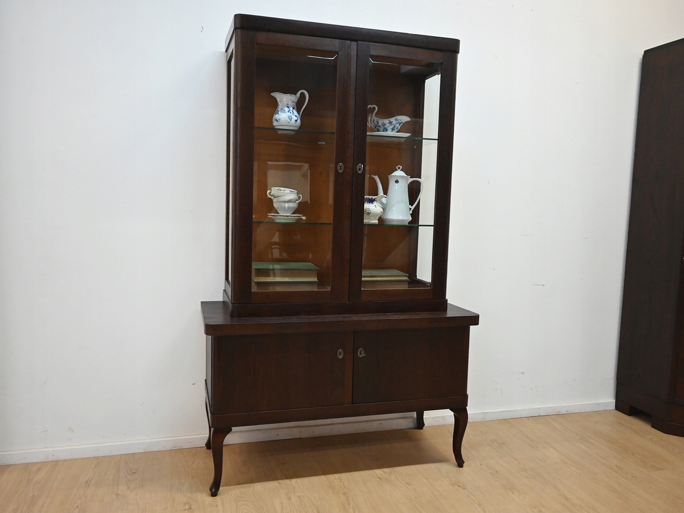 В очень хорошем состоянии. Мебель готова к использованию. Обновились внешние поверхности и интерьер мебели. Мебель уже старая и следы прошлого, не влияющие на ее эстетическое восприятие, являются доказательством подлинности мебели. Стол можно сразу поставить в квартире.