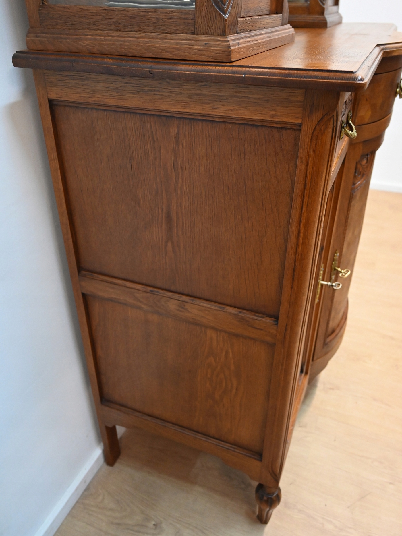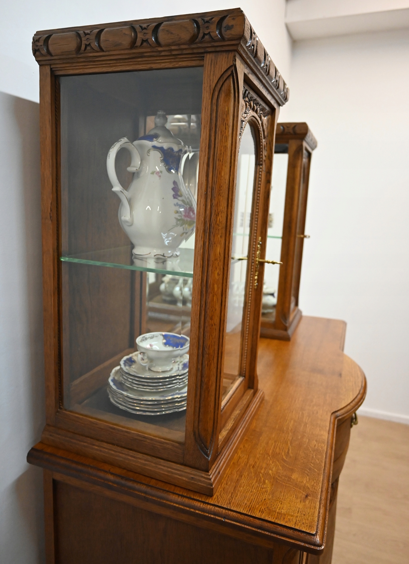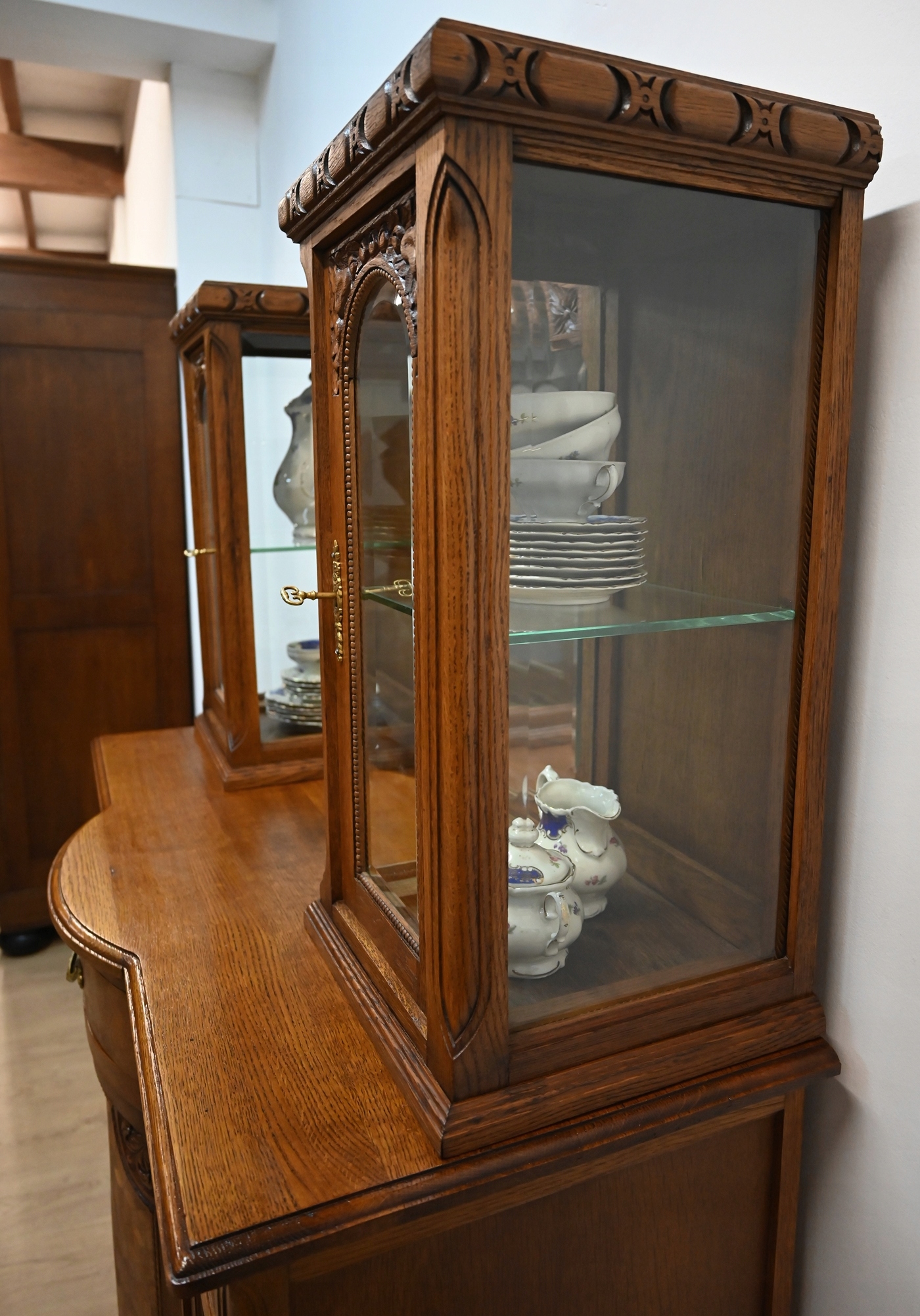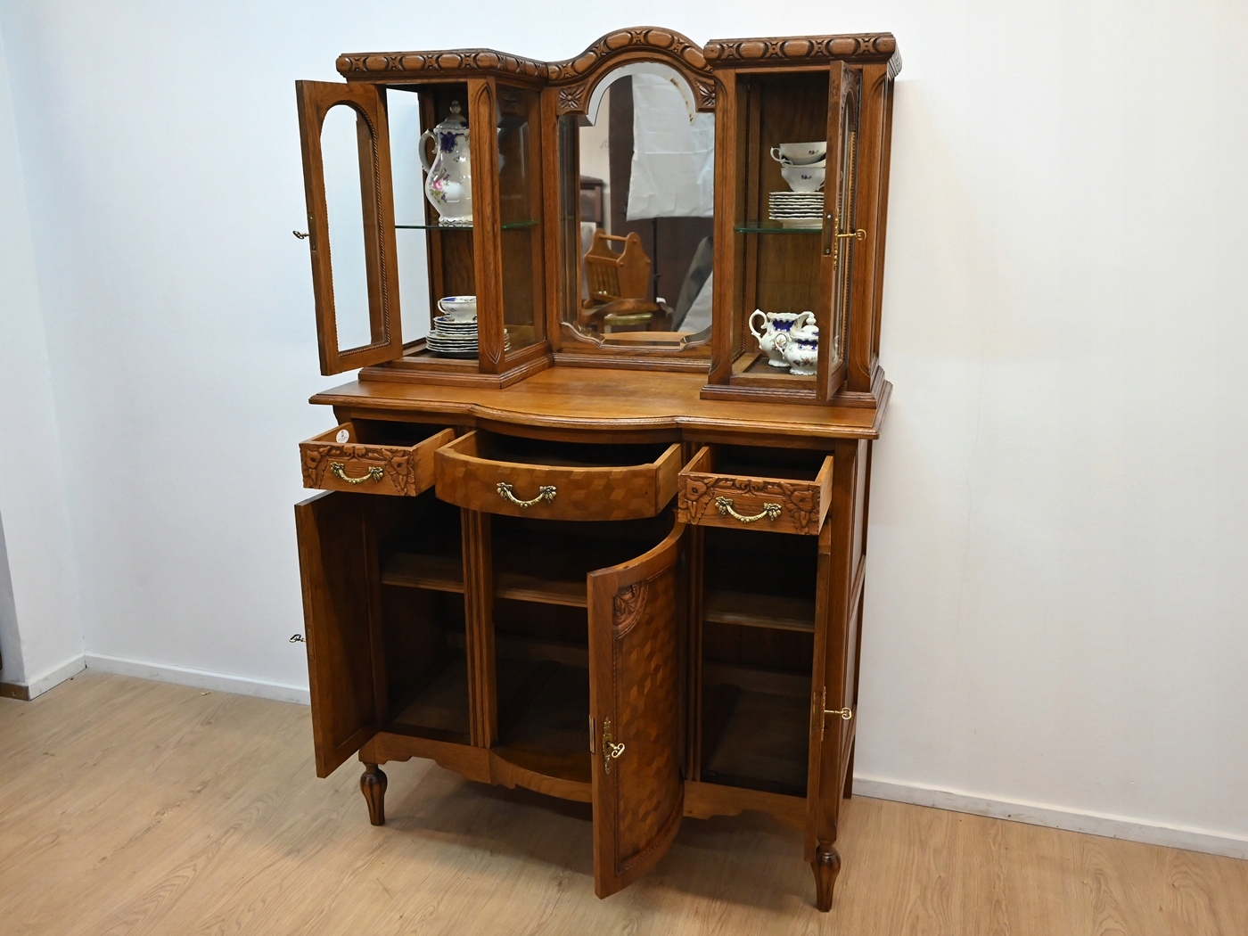 Очень хорошее состояние. Мебель готова к использованию. Обновились внешние поверхности и интерьер мебели. Мебель уже старая и следы прошлого, не влияющие на ее эстетическое восприятие, являются доказательством подлинности мебели. Сервант можно сразу перенести в квартиру.