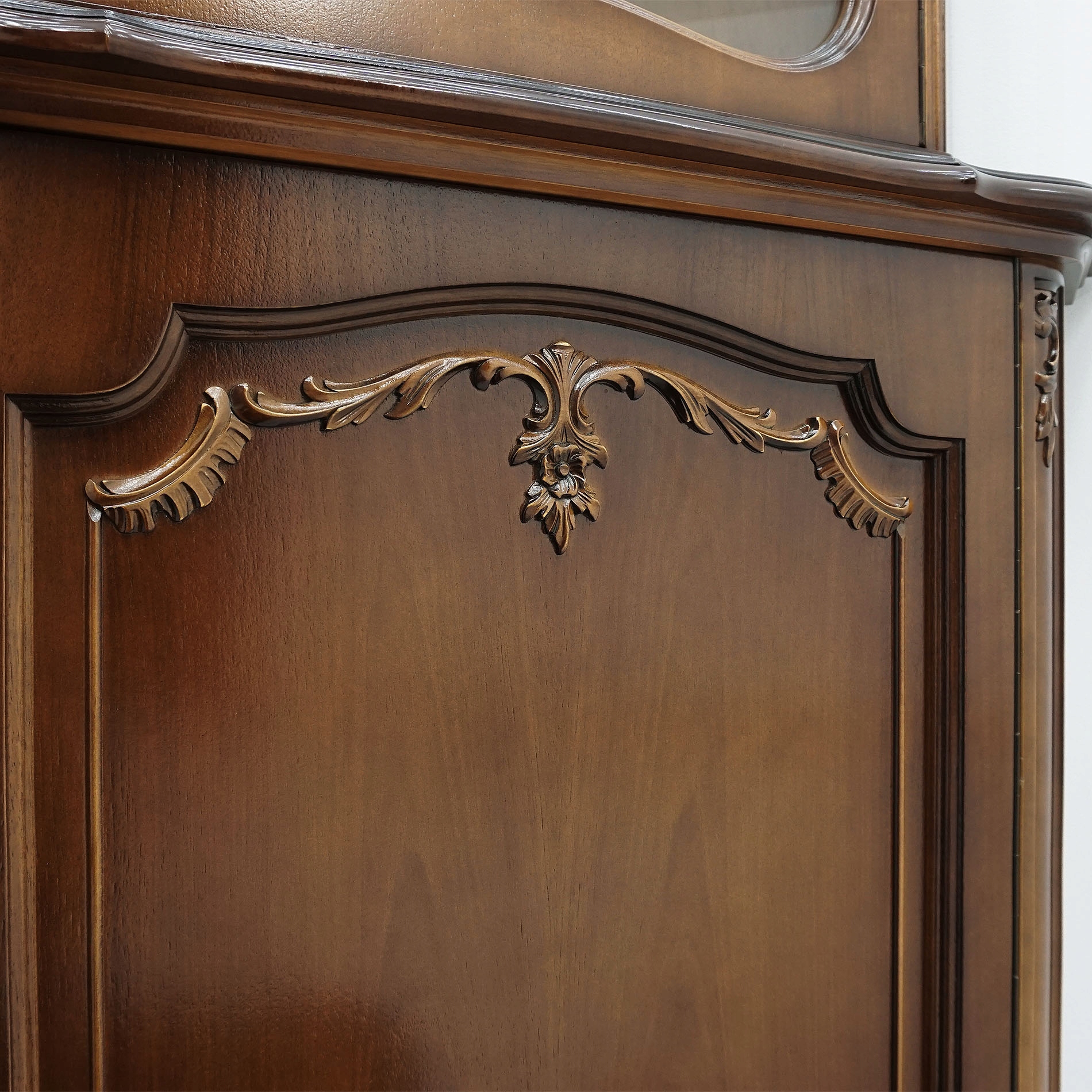 Предлагаем элегантную, стильную угловую витрину в стиле Людвик, которая придаст интерьеру неповторимый характер. Мебель отличается тонкой резьбой и классической формой, типичной для эпохи Людовика XV. Стеклянная верхняя часть позволяет демонстрировать фарфор, стекло или другие ценные украшения, а нижняя часть, закрывающаяся дверцей, обеспечивает дополнительное место для хранения вещей. Все выполнено в благородном оттенке орехового дерева, что подчеркивает благородный характер мебели. Это идеальный выбор для любителей классики и элегантности, желающих придать интерьеру неповторимый шик.