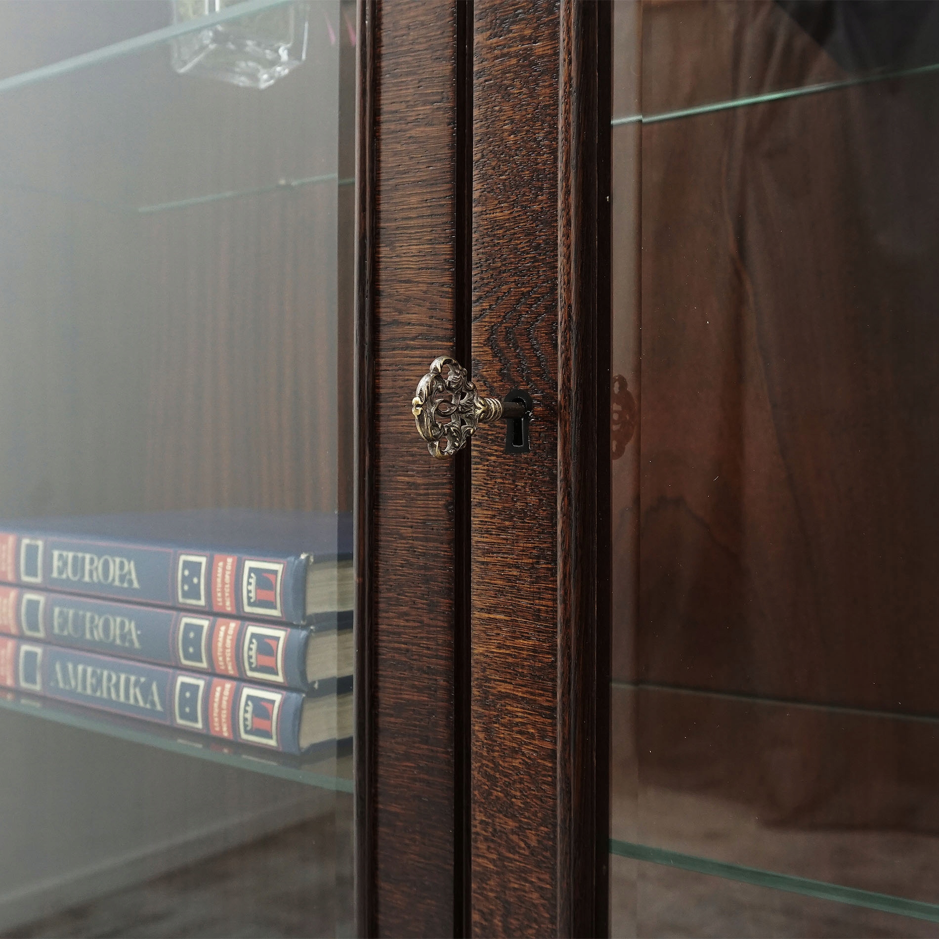 Антикварна, унікальна вітрина з дуба та горіха в стилі арт-деко 1920-х років ПІСЛЯ РЕМОНТУ