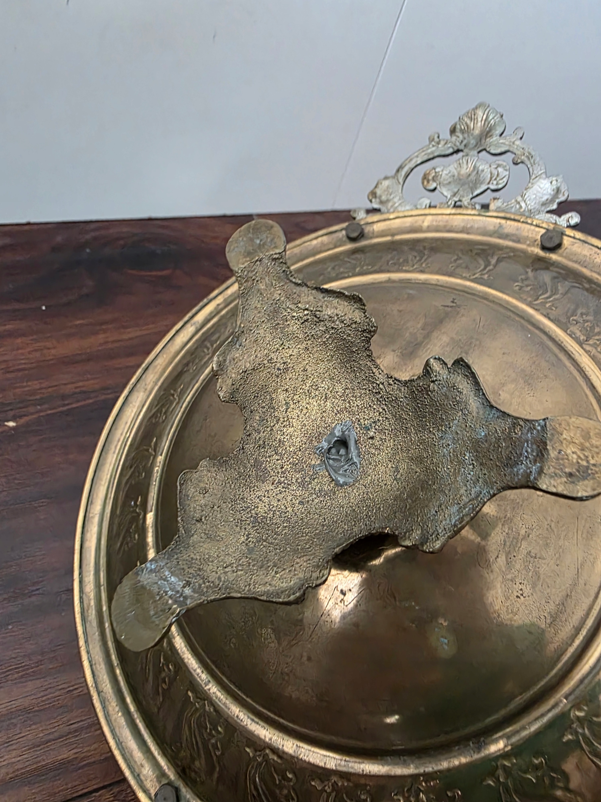 Старинная австрийско-венгерская латунная ваза или поднос для фруктов