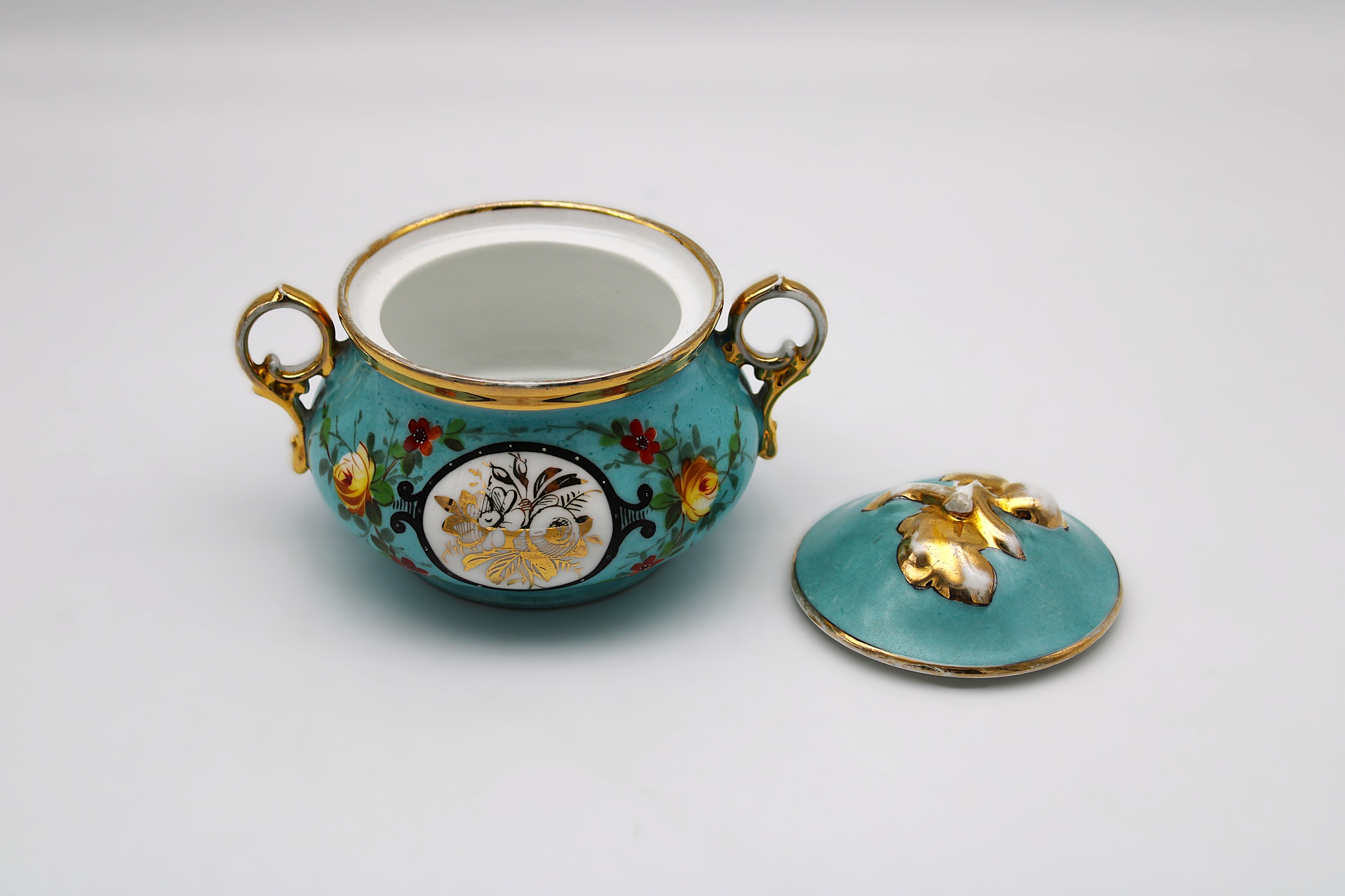 АНТИЧНАЯ ФАРФОРОВАЯ САХАРНИЦА КАРЛ ТИЛЬШ 1870-1900 СТАРАЯ СИЛЕЗИЯ