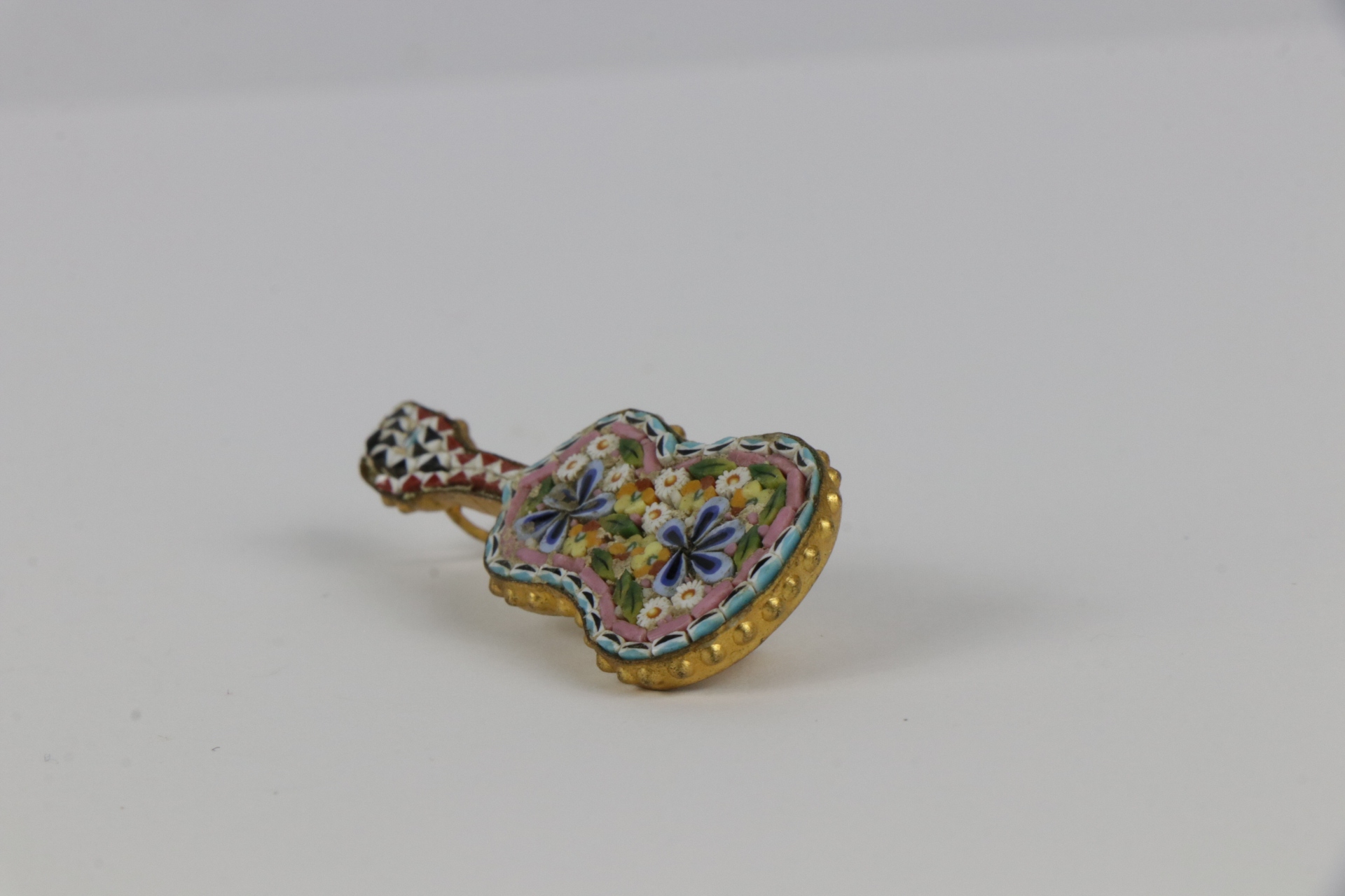 Интересная брошь, выполненная в технике микромуранская мозаика (микромуранская мозаика). Орнамент-рисунок из мелкого разноцветного муранского стекла.