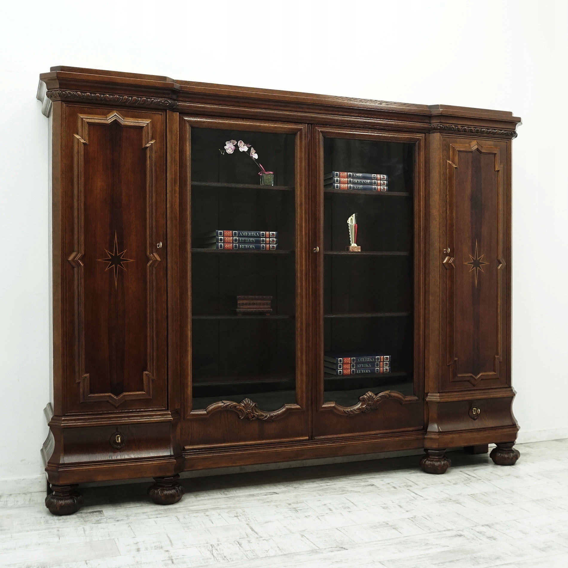 Выполненная из высококачественной древесины дуба, она восхищает тонкими деталями, такими как инкрустация звездчатыми узорами на дверные фасады. Тонкие резные декоративные элементы придают ей уникальный характер, подчеркивая мастерство ремесленников межвоенного периода.