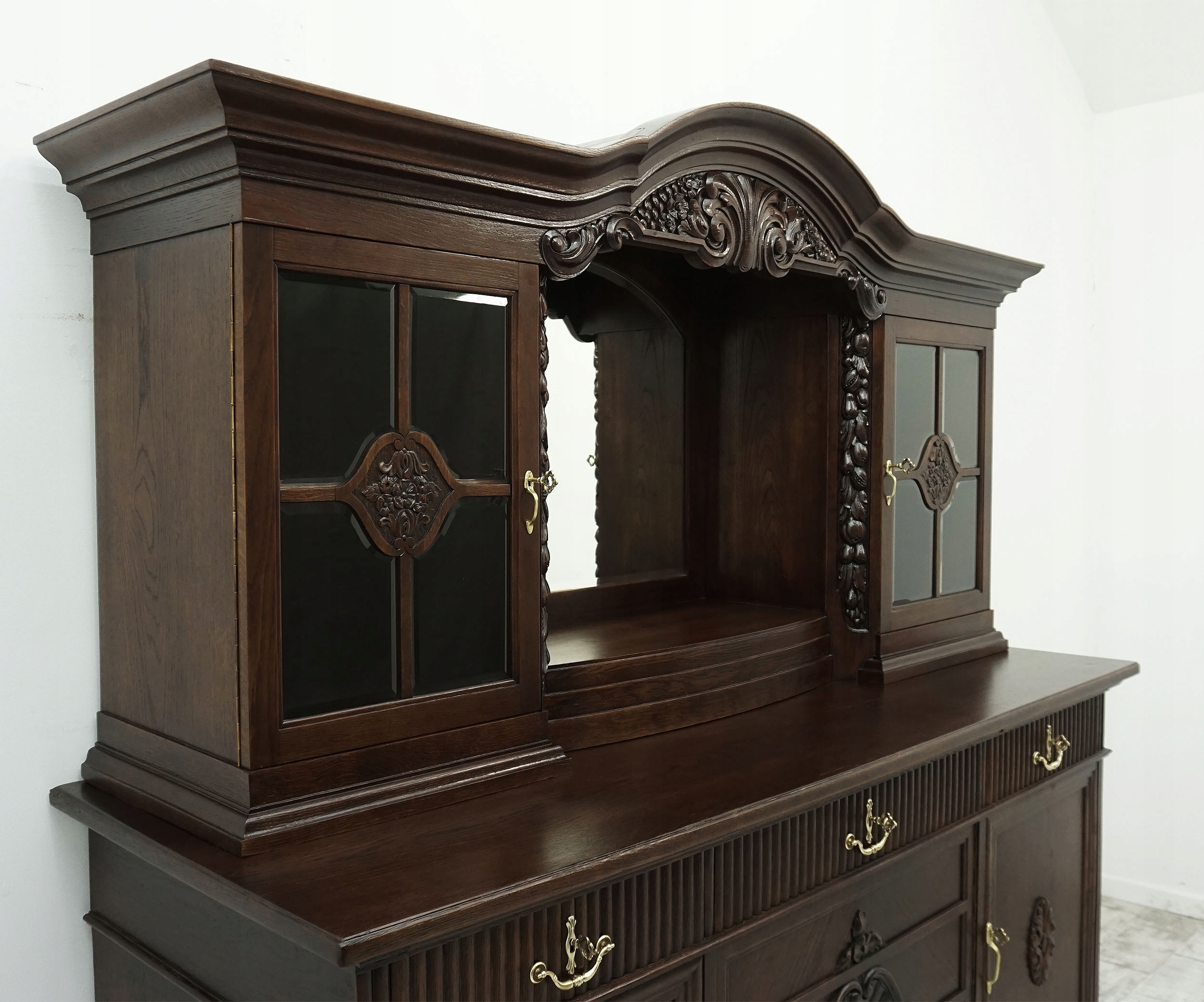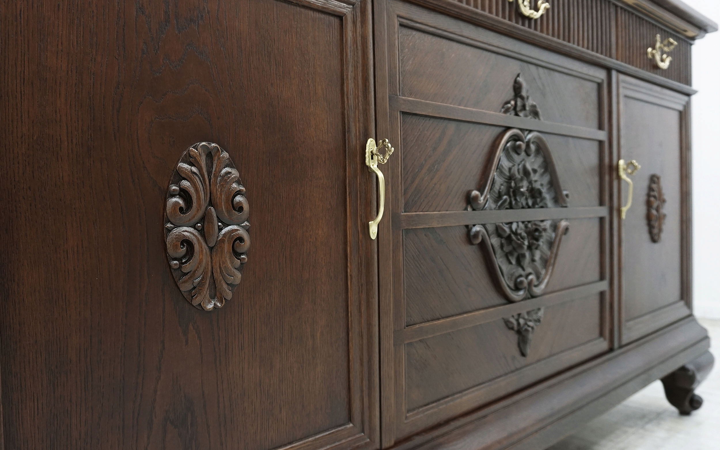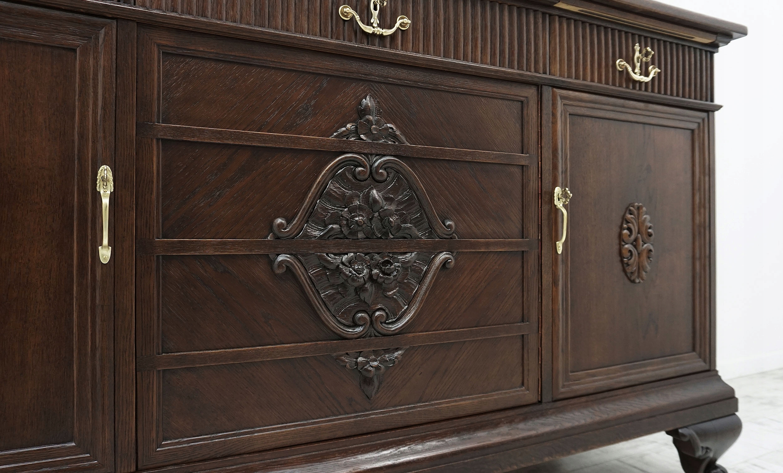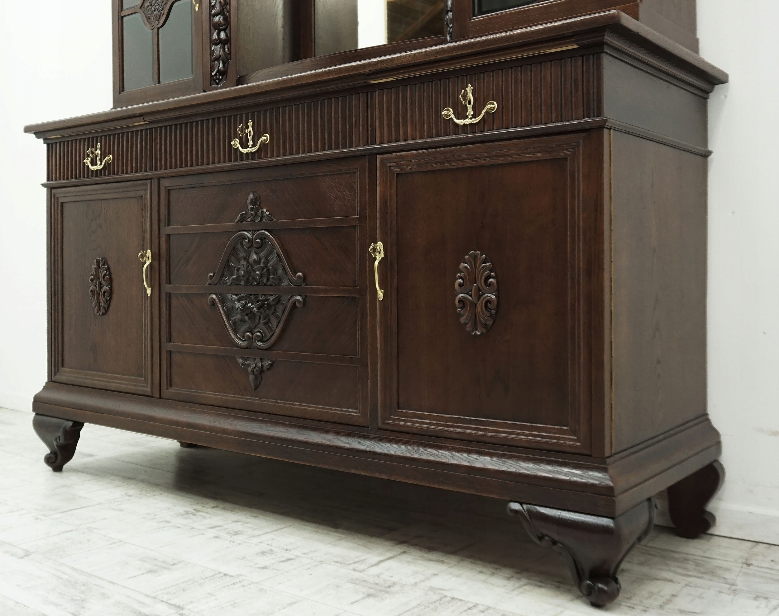Представляем Вам красивый сервант 1920-х годов в межвоенном стиле. Этот предмет мебели родом из Германии и изготовлен из дуба. Буфет был полностью отремонтирован и находится в отличном визуальном и техническом состоянии. Цвета мебели подчеркивают красивую текстуру дерева и детали резьбы. В буфете оригинальное фацетное зеркало и фацетное стекло.
