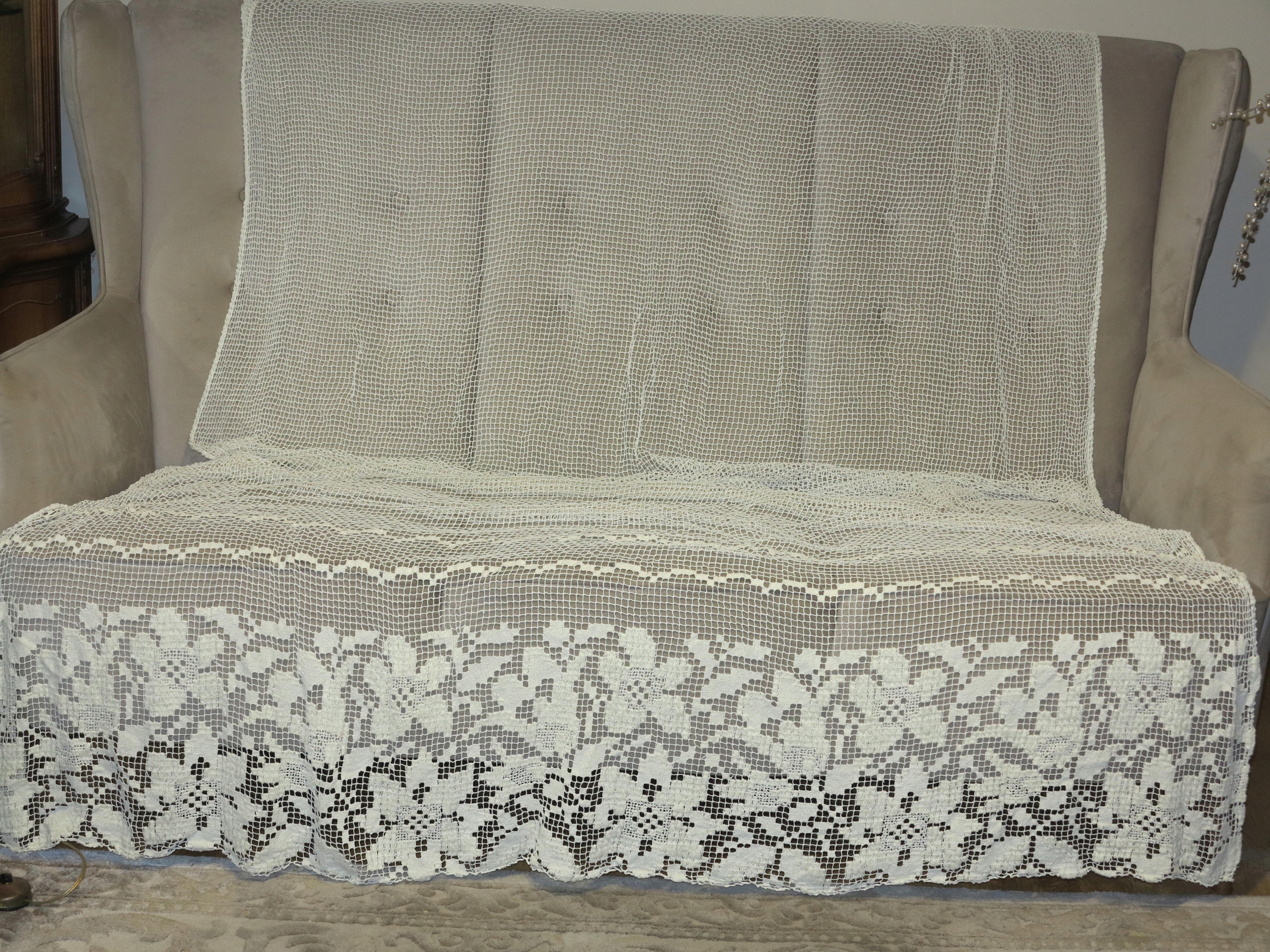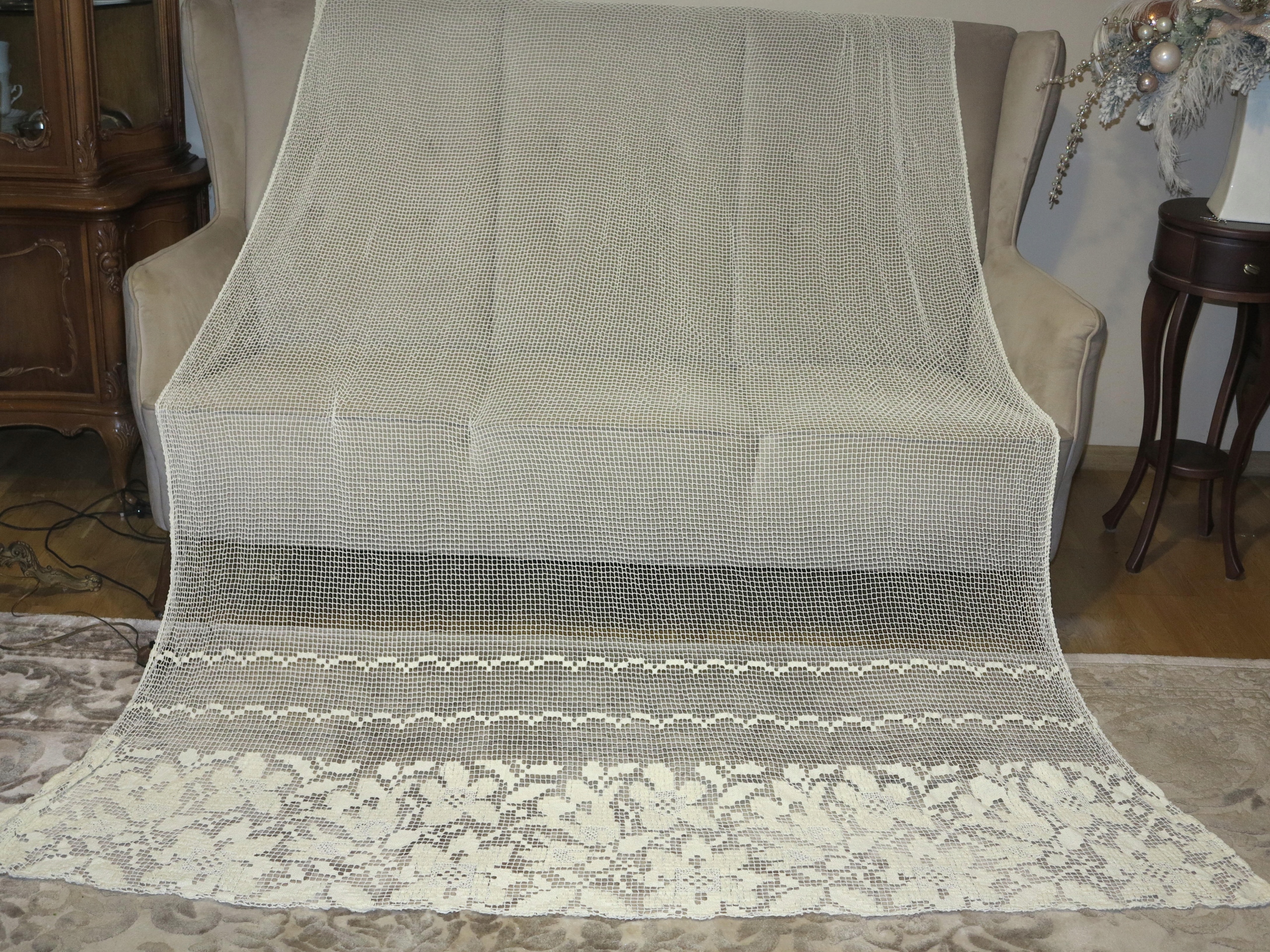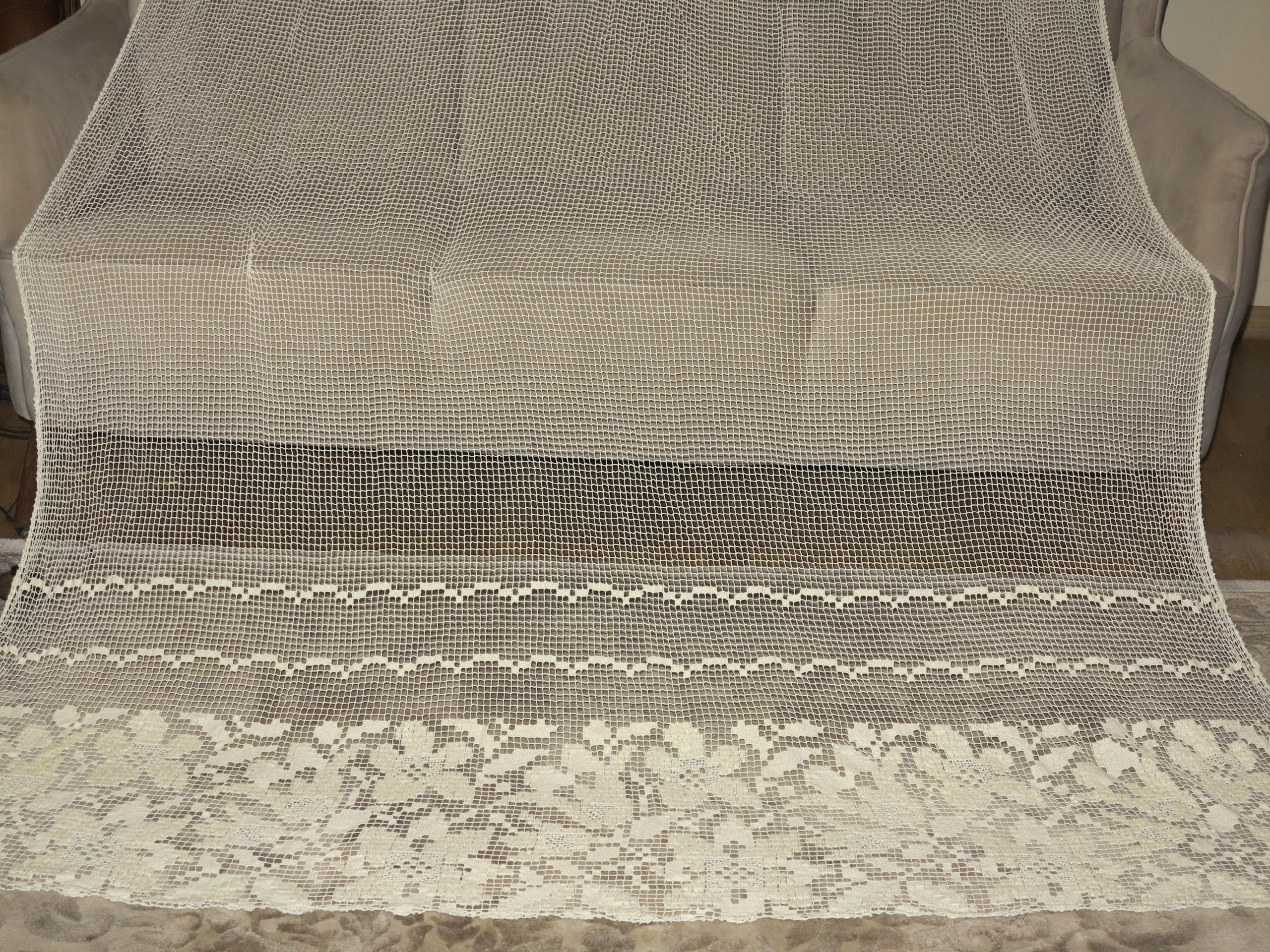 АНТИЧНУЮ - УНИКАЛЬНУЮ, КРАСИВУЮ, ВЕКОВУЮ ШТОРУ ВНИЗУ С ИНТЕНСИВНЫМИ УЗОРАМИ ЦВЕТОВ ЛИЛИИ. ШТОРА ПОЛНОСТЬЮ РУЧНАЯ РАБОТА ИЗ ХЛОПКОВЫХ НИТЕЙ