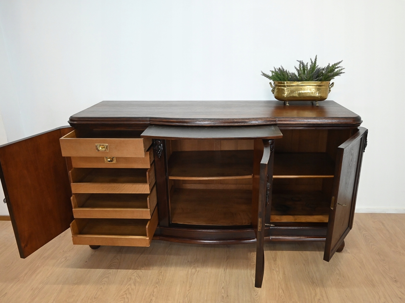 В хорошем состоянии. Мебель готова к использованию. Обновились внешние поверхности и интерьер мебели. Мебель уже старая и следы прошлого, не влияющие на ее эстетическое восприятие, являются доказательством подлинности мебели. Комод можно сразу разместить в квартире.