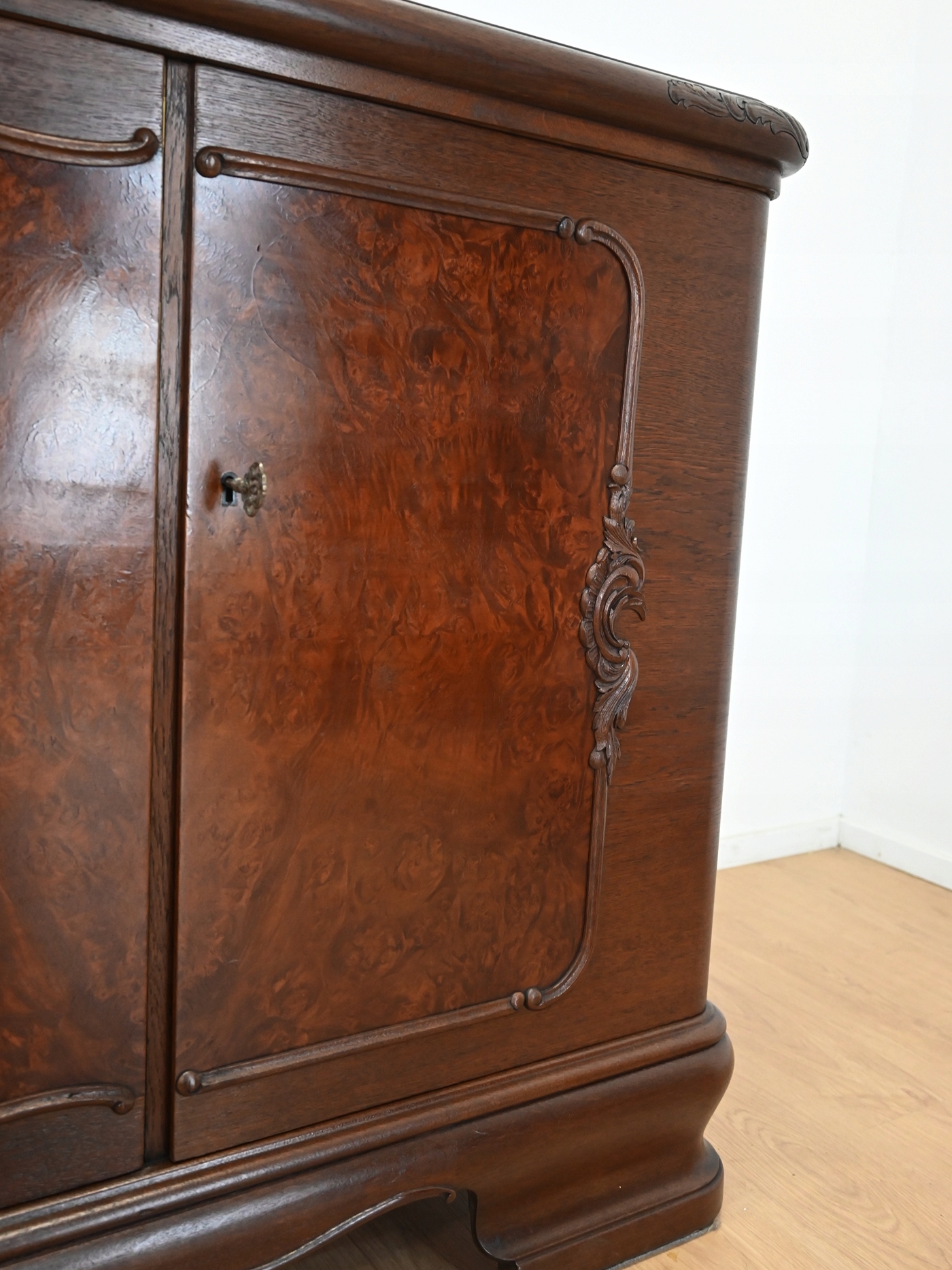 В очень хорошем состоянии. Мебель готова к использованию. Обновились внешние поверхности и интерьер мебели. Мебель уже старая и следы прошлого, не влияющие на ее эстетическое восприятие, являются доказательством подлинности мебели. Комод можно разместить сразу в квартире.