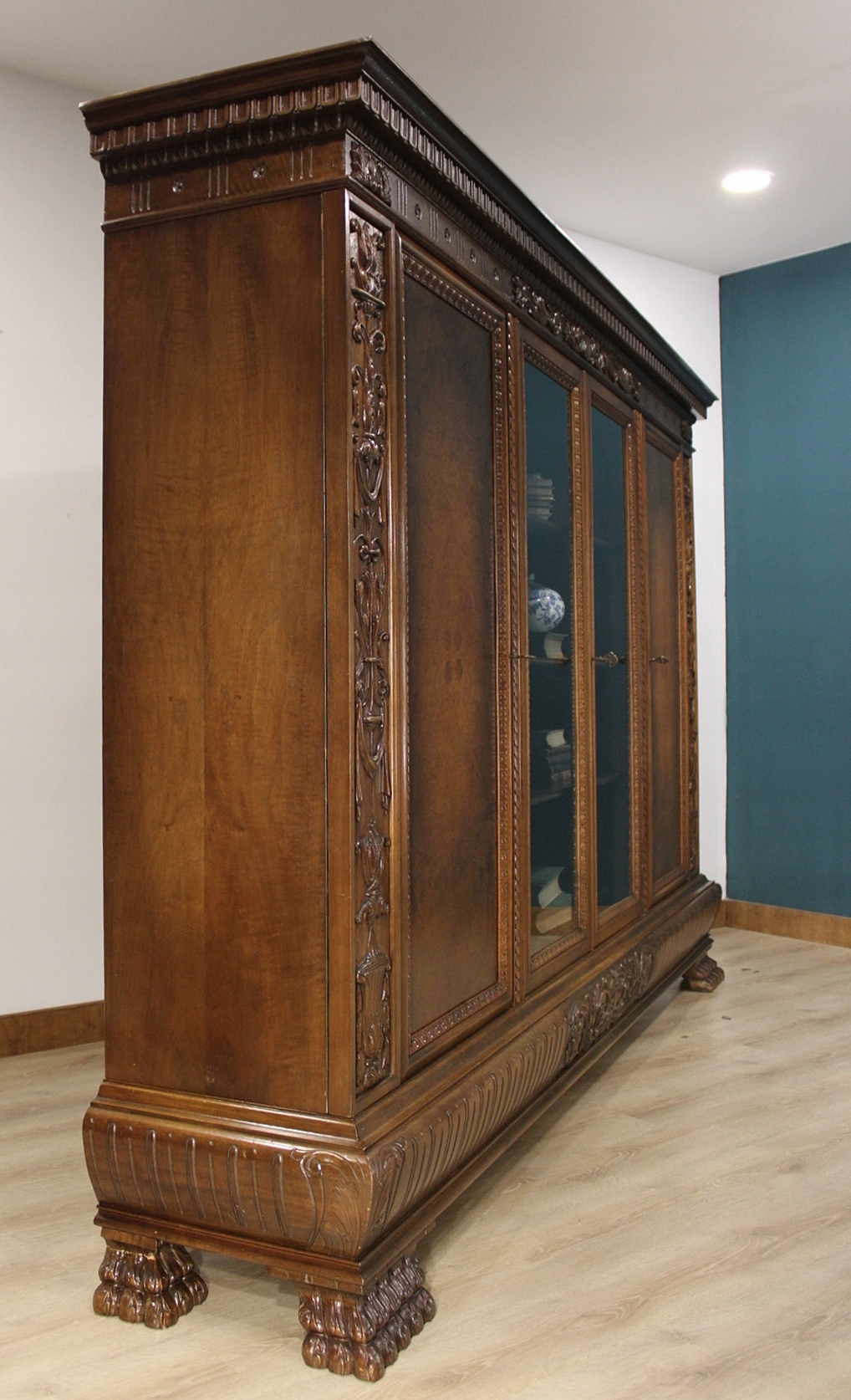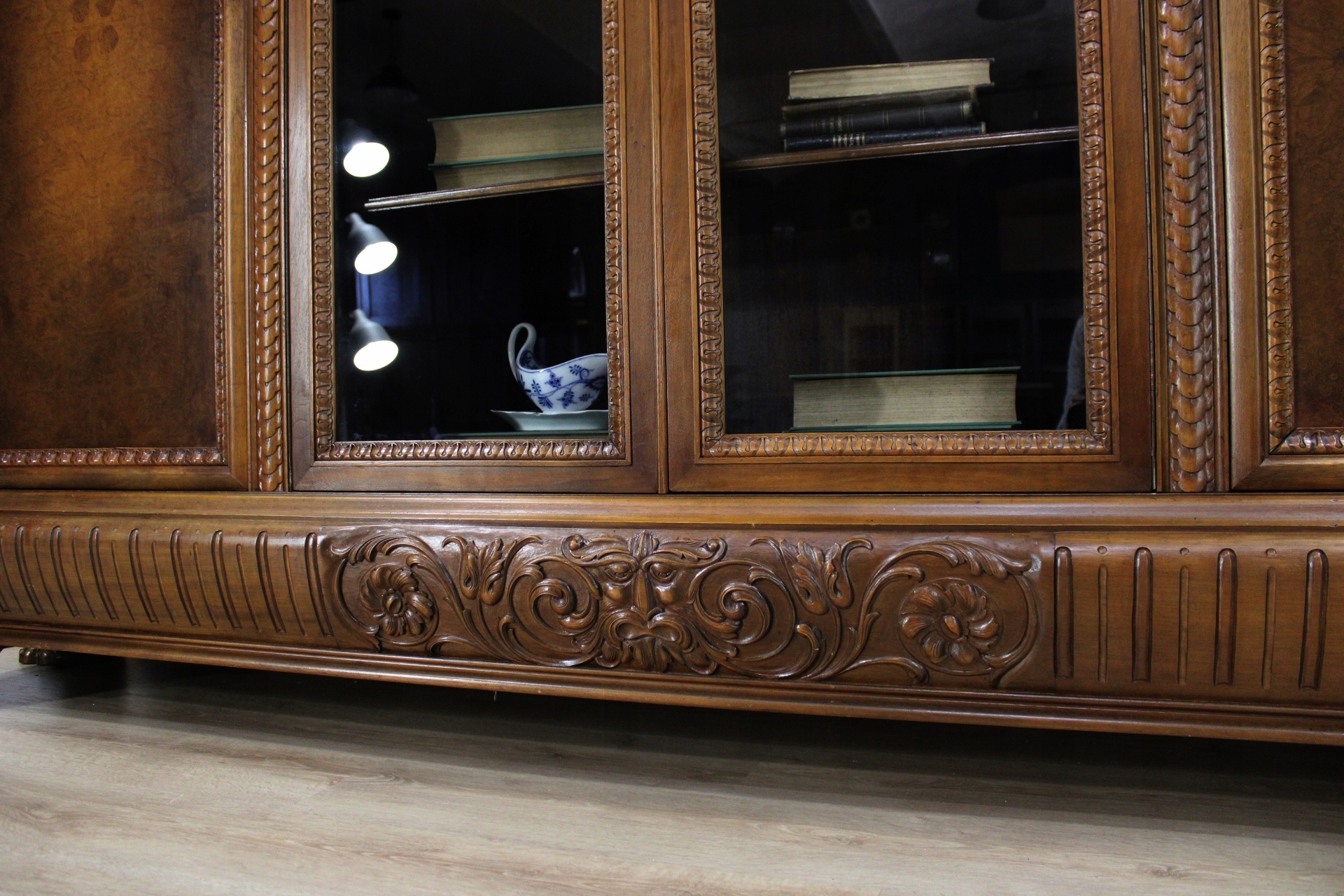 В очень хорошем состоянии. Мебель готова к использованию. Обновлены внешние поверхности и интерьер мебели. Мебель уже старая и следы прошлого, не влияющие на ее эстетическое восприятие, являются доказательством подлинности мебели. Библиотеку можно разместить сразу в квартире.